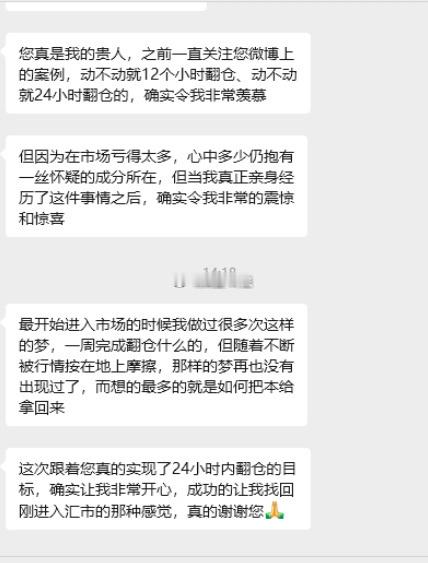 百万战队再添一位成功提交收米申请的淘金者(第11位)因为涉及到一些隐私的问题,这位实盘好友特意告诉叶生不得把姓名和头像给打出来,但为了持续更新我们百万战队的情况,叶生我只好出此下策只把聊天内容和操作的记录分享出来,让大家可以直观看到仅仅凭借什么样的神策就完成翻身之举。这不仅仅是一次账户的增值,更是团队对金融的专业性以及无私的奉献精神,这是团队的日夜心血,每一次布局都是由数十人深入探讨而出,每一单都是能带着我们胜利的希望,我们的职责就是为了给大家拿下成果、创造收获,让你们能过上更好的生活,仅此。