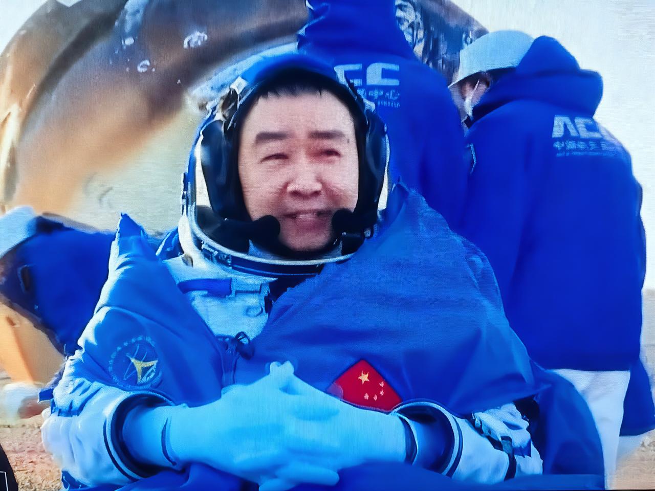 神舟二十号航天乘组今天16点40分安全返回,以下是返回时的情景。