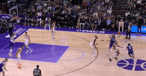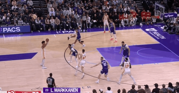 老鹰观察:杰伦·约翰逊31+18+14+7生涯之夜在今天老鹰对阵爵士的比赛中,杰伦约翰逊打出了自己生涯最佳的一场比赛,31分、18篮板、14助攻、7抢断,均创下自己的生涯新高。图1“Touch”掩护后接球处理短下顺,迎着弱侧的压缩中路空间直接起身终结。图2先借助克雷伊奇的“Flare掩护”先衔接和奥孔古的“Flip”配合,右路突破直杀篮下顶飞米哈后反篮躲避协防。图3拖车跟进接基顿上球后开阔空间下左路突破直杀篮下,顶开森萨博后滞空右手找板抛投。图4高位发牌,给弱侧无球Slip后直接切入篮下的克雷伊奇上球。图5肘区单打马卡吸引夹击后回给slot空切接应的戴森。图6持球拖过半场后顺势回给拖车跟进的本场手感火热的奥孔古。图7预判到菲利要给借助乐福无球掩护接球的科迪上球,直接抄截传球。图8上篮打进后迅速回防,抢断弩机给前场队友的上球。图9乔治“秦王绕柱”反跑篮下,约翰逊回收协防避免篮下被打穿并成功将球抢走。