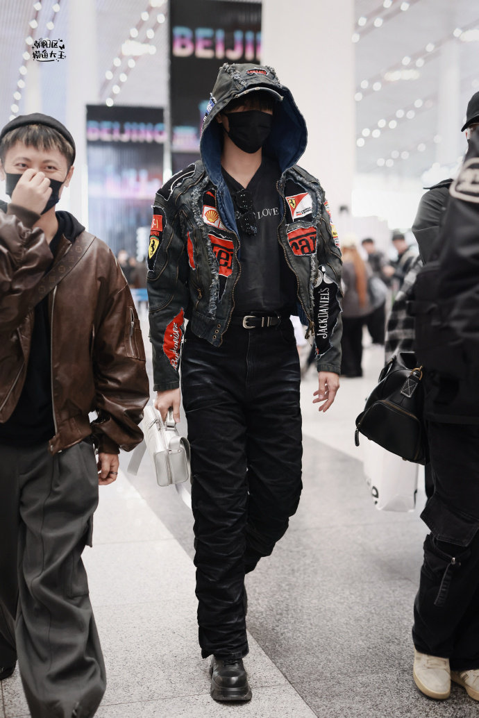 展轩出发赣州,展轩机场潮男look,谁来懂一下这个展轩不规则外套+褶皱黑裤,满分潮男感的look,一整个有被帅到啦~