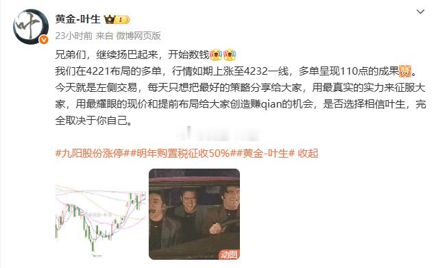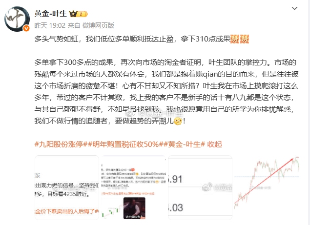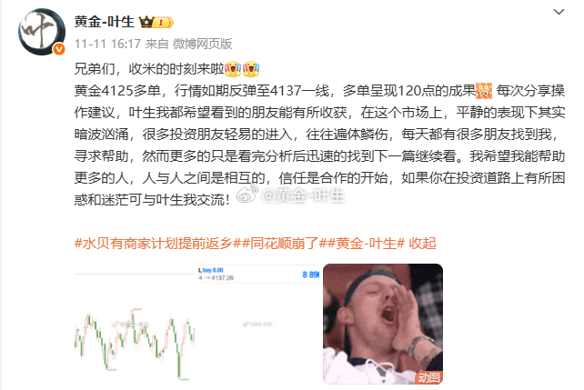 近期操作非常顺利,有些人可能会问,老师为什么你会这样连胜不断?因为我们每一单的都是稳健布局,策略注重的是质量,而非数量。每一次的布局都是经过深思熟虑,绝不随意给出,让你放心跟随。新关注的朋友可能会觉得不可思议,但这都是实实在在的策略布局,有质疑的朋友欢迎翻阅博文查看。事实摆在眼前,各位粉丝朋友只需安静观看博文即可,每日呈现提前布局、现价策略。如果你因为之前的一两单亏损就离开叶生我,那么你必然是无福消受更加丰厚的成果!关注叶生时间稍微久一点的朋友就可以发现,我们每日的布局与那些光写光荣战绩与马后炮精彩分析的大V的差距,他们那些人只会靠嘴炮吹嘘、丝毫不干一点实事,天天就靠盈利图大吹特吹吸引投资者的眼球,关键你们还真信。