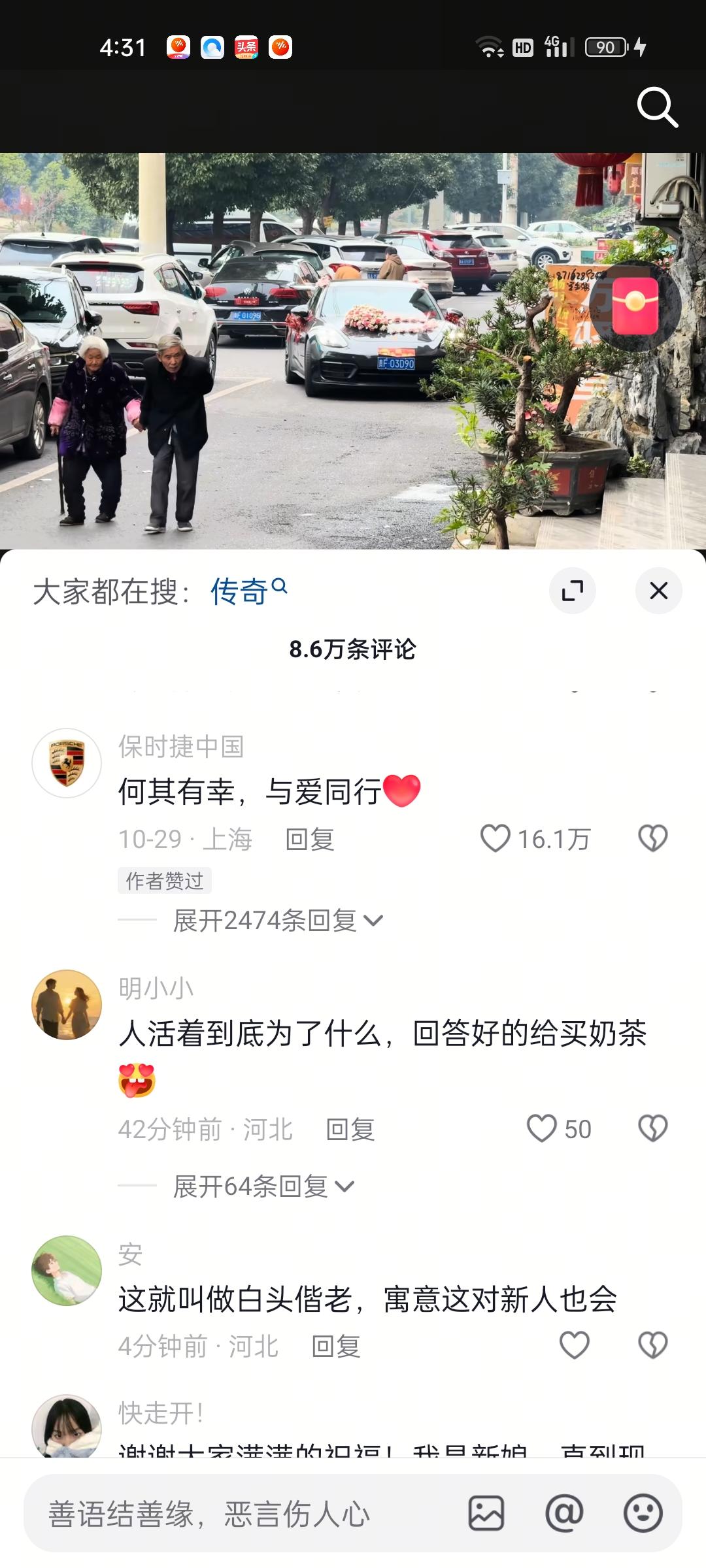 婚姻最好的状态,就是白发苍苍,携手并进。 婚礼途中,头车拐进支路时,一对老夫妻,携手沐浴在阳光中,缓步前行。 刚好这一幕被网友拍摄曝光后,网友暖评如下: ″见证过爱情的人给你们开路。" ″这算不算最好的引路人?" "何其有幸,与爱同行!″ 美好的爱情,幸福的结局,人人向往!