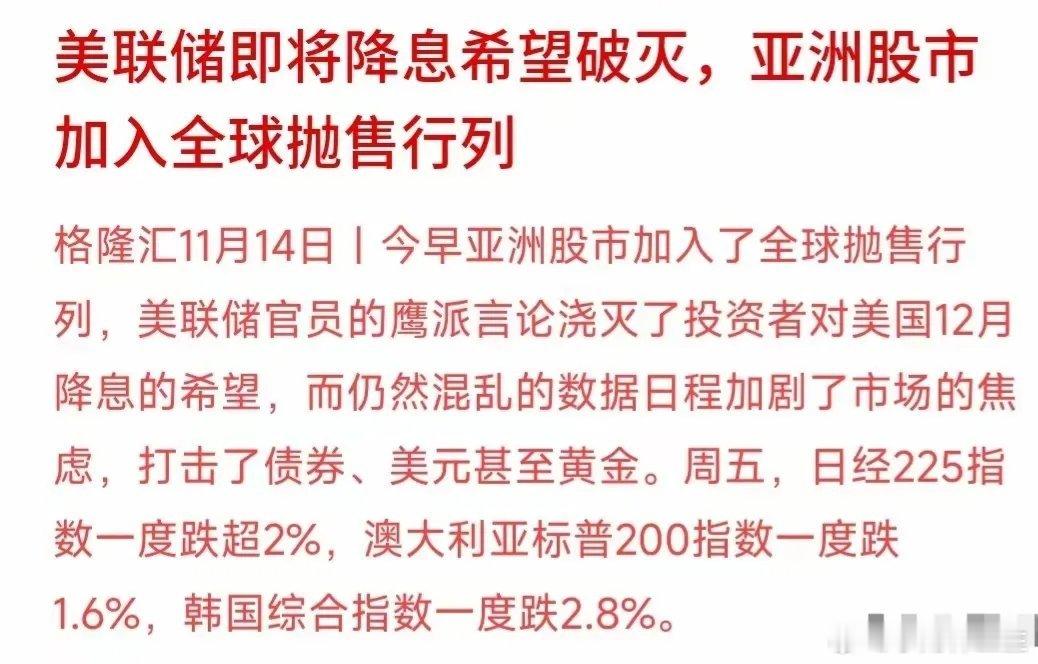 A股。今天11月14号(周五),今天尾盘加速跳水,就是有利空消息,有资金还是怕周末,再有利空消息,所以尾盘加速流出。还是受到外围市场的影响。还有就是美联储,鹰派言论,利空全球市场。看下图。这就是我前几天文章中说的,大科技高位票,涨了就要控制仓位,切莫贪杯。日本存储巨头铠侠公司,业绩爆雷影响,全球存储板块全线暴跌,铠侠公司股价暴跌超23%。韩国存储芯片巨头SK海力士、三星电子分别暴跌超8%、5%。A股存储芯片板块亦全线大跌,佰维存储、江波龙均大幅收跌超10%。隔夜美股市场,闪迪、希捷、西部数据分别暴跌超13%、7%、5%。