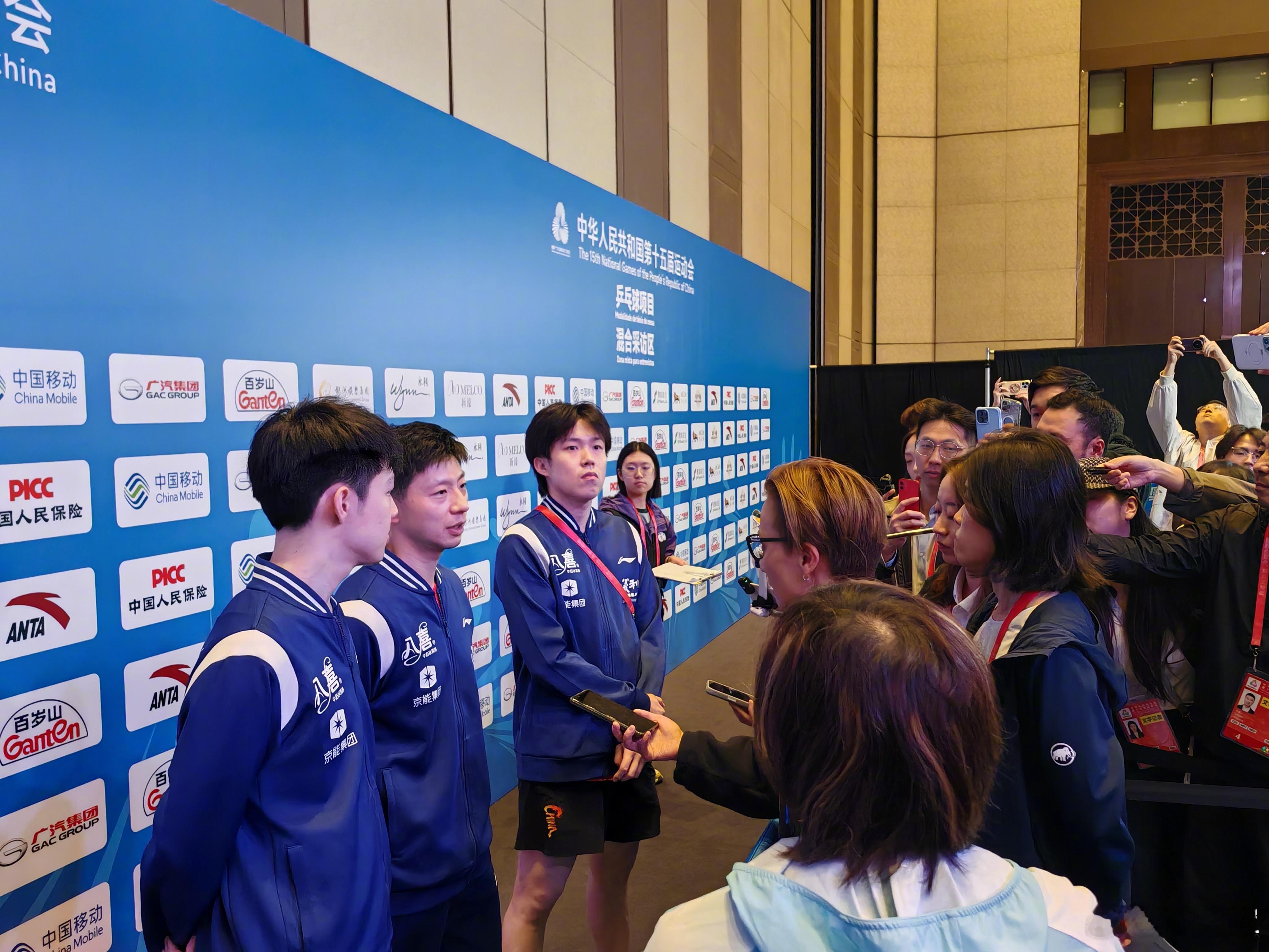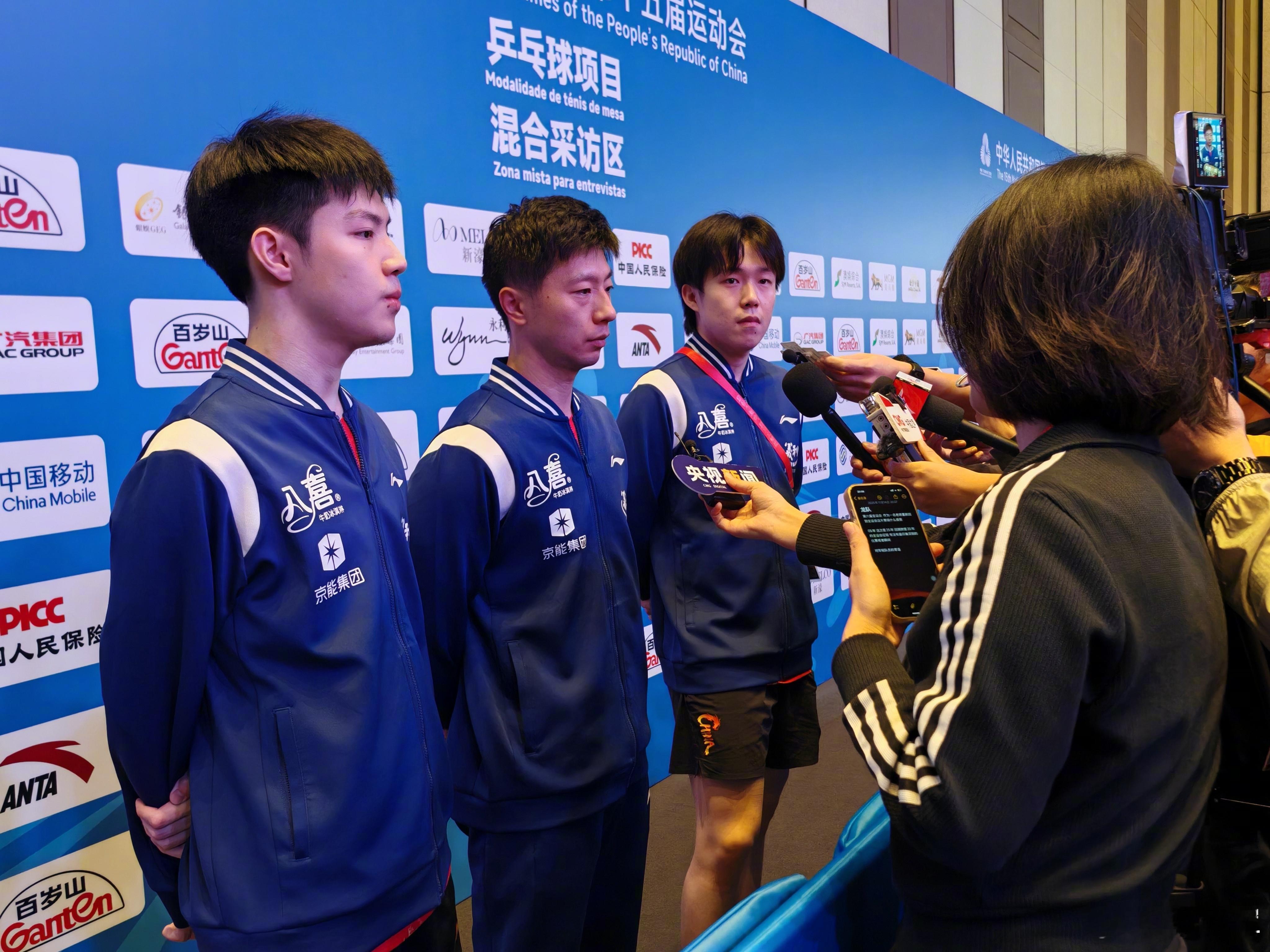 男单1/4决赛后,王楚钦在混采区接受媒体采访!