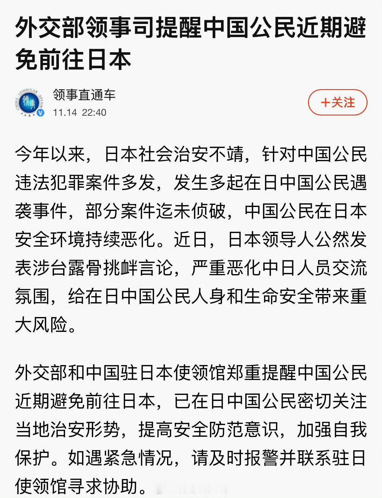 本来有日本出游的计划,现在有点害怕了,日本最近感觉治安有点不好,又是熊伤人事件又是近期一些中国公民在日本遇袭的