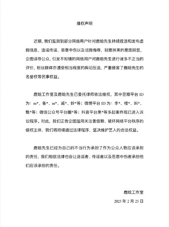 支持鹿晗维权黑粉你继续告黑大舞台属于你的判决书终会到