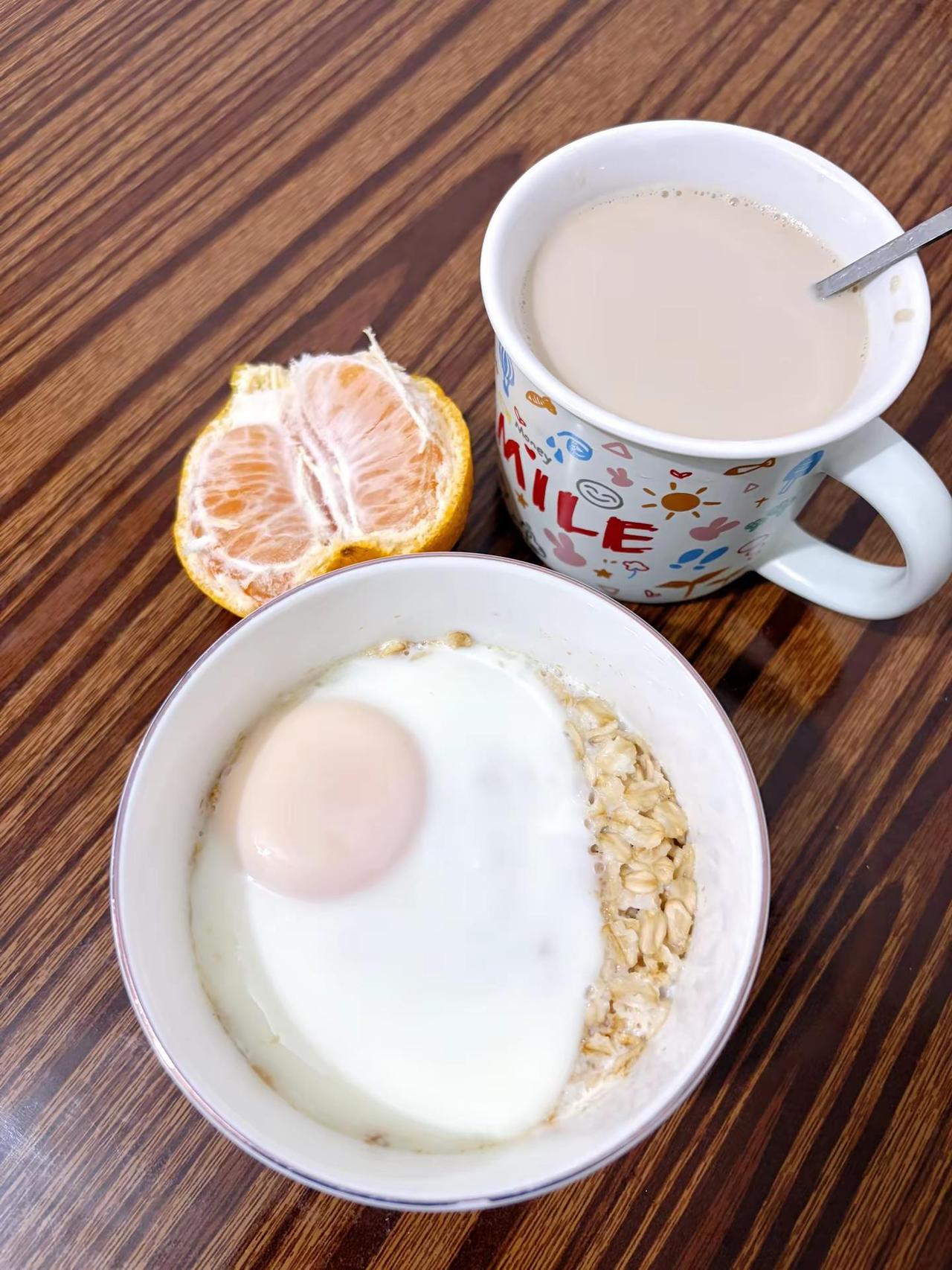 减脂早餐。泪水打湿我的减脂餐,目标105斤,加油今日减脂早餐:牛奶燕麦鸡蛋+拿铁+橘子体重管理体重管理减脂早餐自律减脂健康餐一周不重样的减脂餐