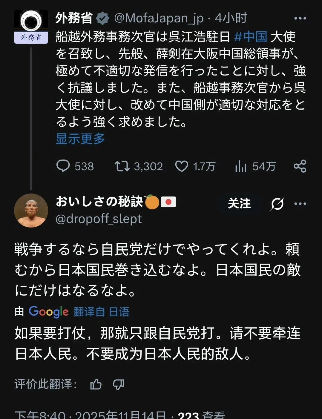 就在刚刚日本突然宣布11月15日,日本公明党党首齐藤铁夫等多方人士集体发声,