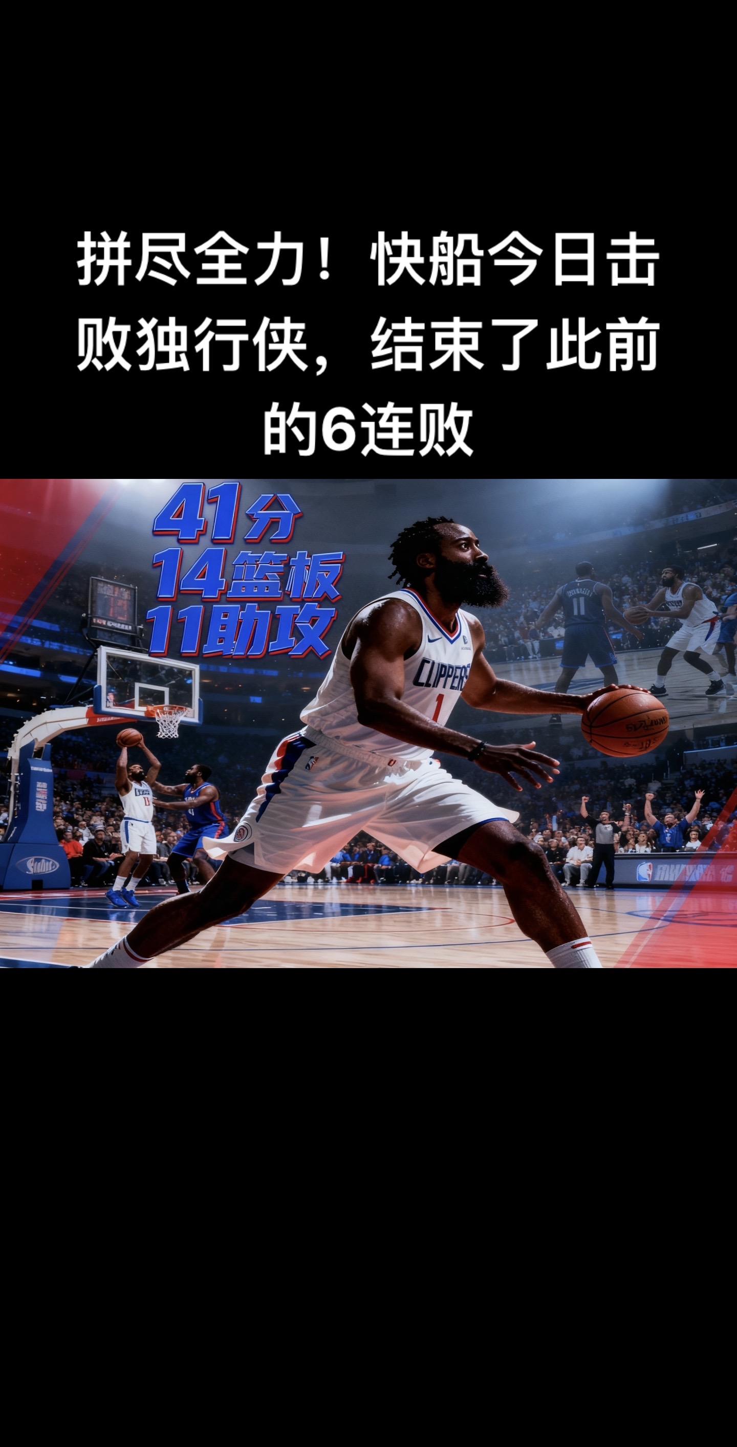 这场胜利全靠哈登拼尽全力带队硬扛!北京时间11月15日的NBA杯小组赛上,快船客场历经双加时以133 - 127力克独行侠,总算终结了此前的6连败,还送给对手3连败。 36岁的哈登堪称本场赢球最大功臣,他足足鏖战51分钟,25投13中(三分12中6),罚球11中9,轰下41分14篮板11助攻2盖帽的大号三双,不仅创下快船队史首个40+三双,还凭借这第8次快船生涯三双独占队史三双榜首位。比赛过程一波三折,快船曾取得15分领先,却被独行侠多次追平,哈登在第一个加时连续命中2记三分,还险些完成绝杀,可惜抛投遭盖