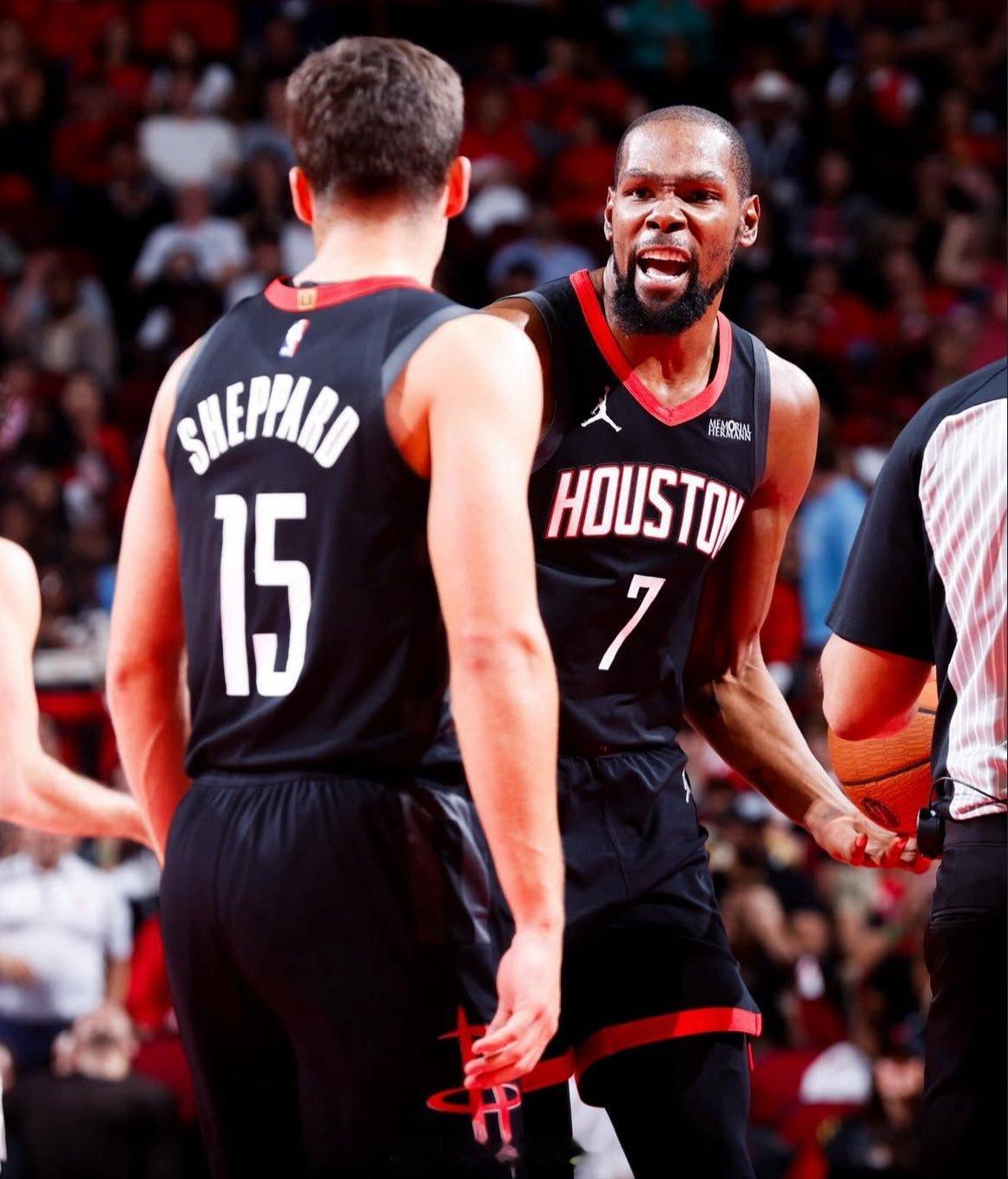 火箭随队记者Jackson Gatlin:“看着杜兰特不断鼓励谢泼德,已成为本赛季的一大亮点。”