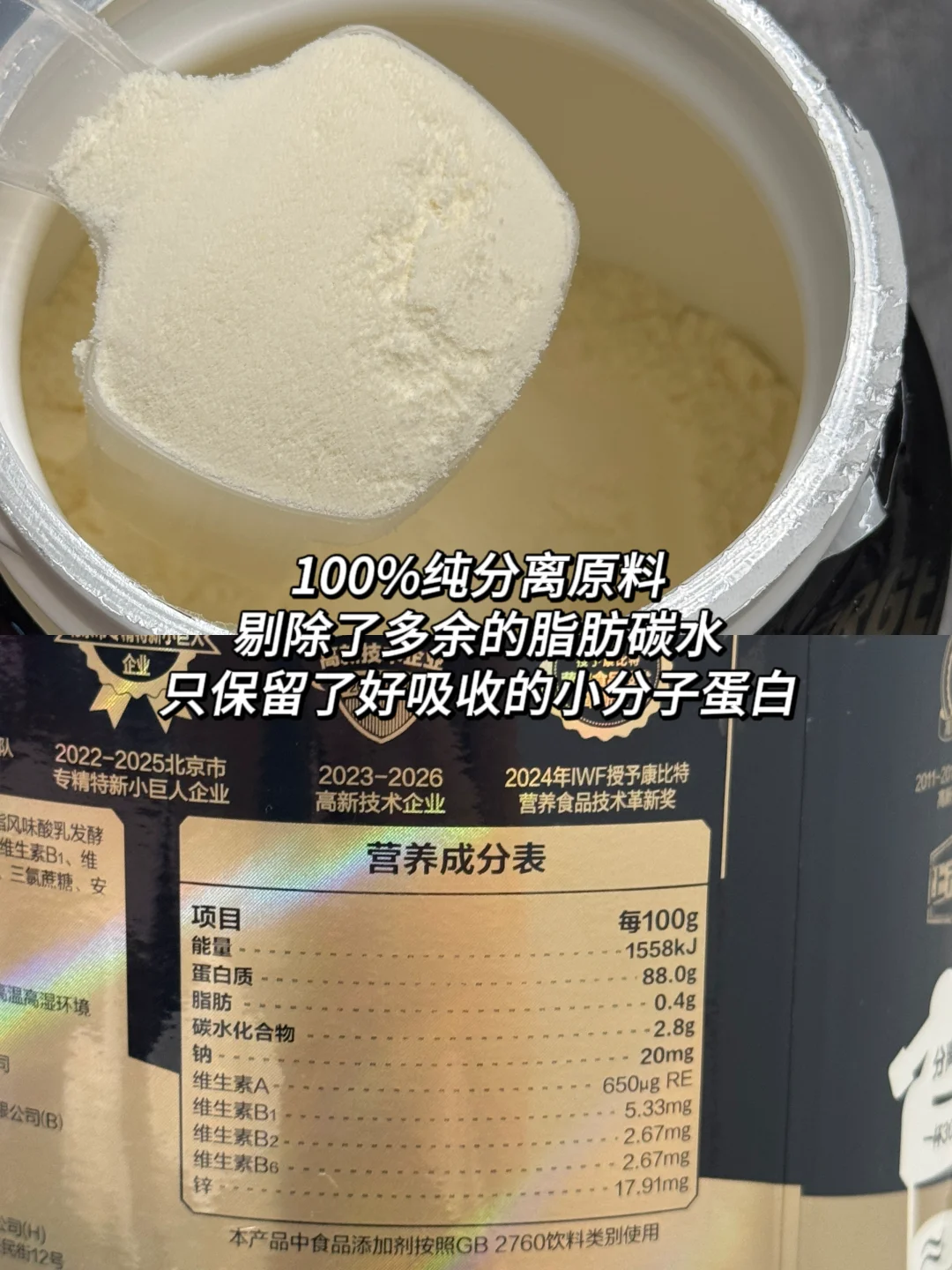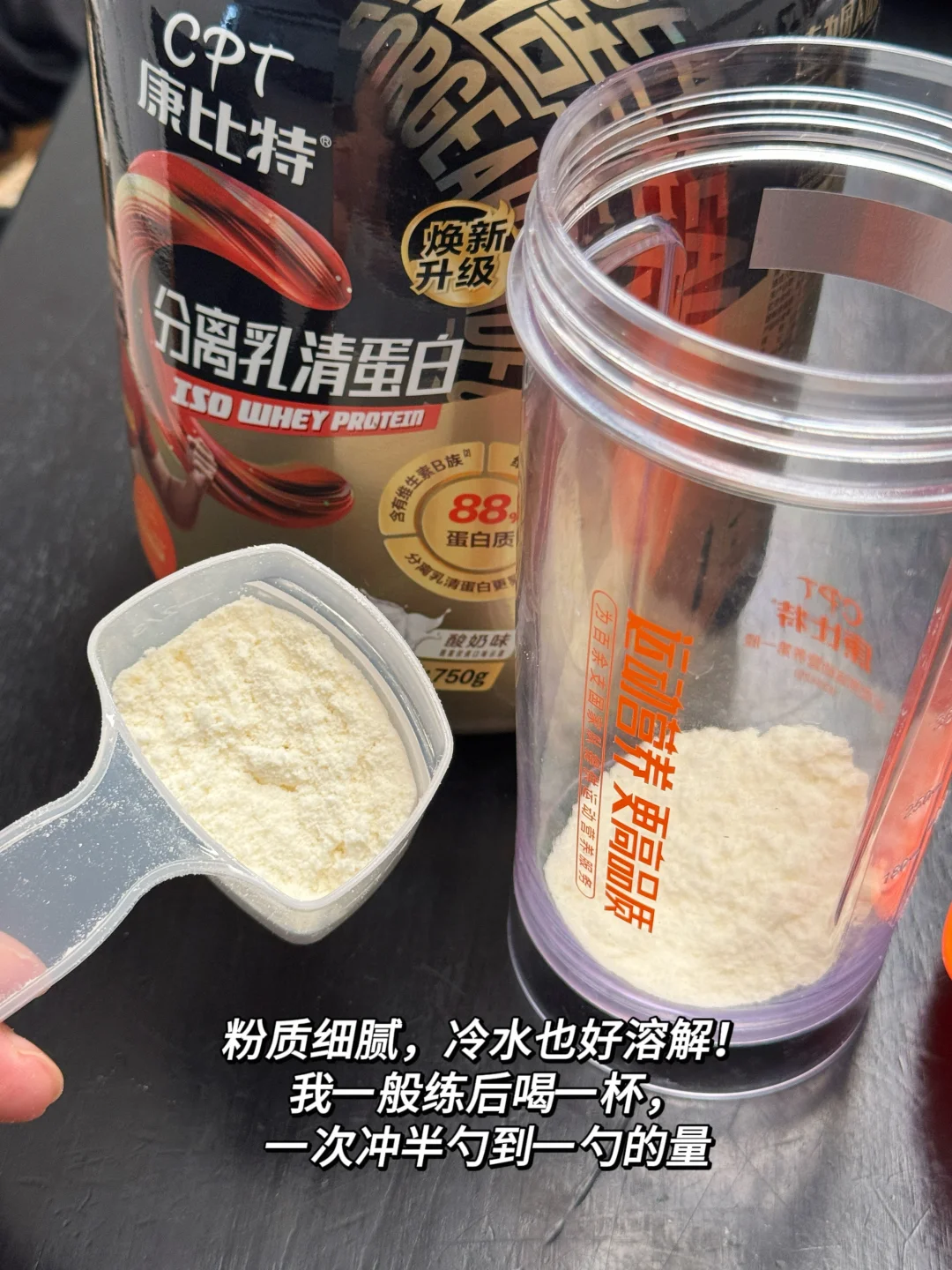 我一直喝的这款康比特分离乳清蛋白粉还挺适合我的——它是100%纯分离蛋白,去除了多余的脂肪碳水和不好吸收的大分子蛋白,只保留了更好吸收的小分子