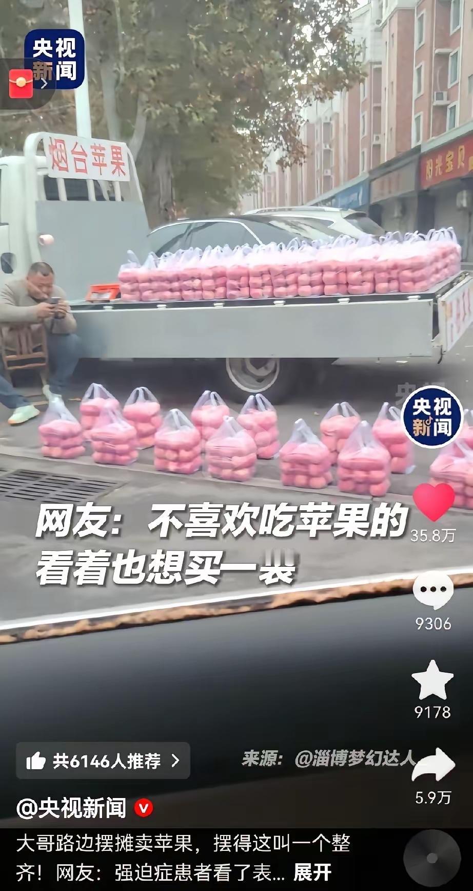 这就是, 中国军人刻在骨子里的自律, 即便是退役了,也不忘记曾经的军旅习惯! 淄博这位卖苹果的大哥摆出的苹果就让人眼前一亮! 网友拍下了大哥的苹果摊位,所有的苹果按照袋子分装好,每个苹果整齐罗列,每一袋也都排列整齐! 真的是喜欢吃苹果的人也想忍不住买一袋,因为颜值太高,干净整洁的让人舒服。 原来大哥曾经当过兵,对于物品的摆放要求极其的严格自律,这是他的一个习惯,摆放好的苹果可以让人看着舒服。 难怪呢,这大哥是把军人的自律刻到了骨子里了!
