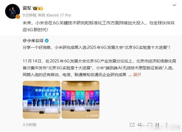 看到咱小米6G成果入选北京6G实验室十大进展,真的给锐锐看激动了,这波的确太给米粉们长脸了。这套端到端AI无线系统还是很能打的,单模块、多模块还有端到端部署都能搞定。在AI加持下传数据、传控制信息不仅稳而且特别的高效,还整了跨层处理的新玩法,直接给6G标准讨论提供了关键方向。雷总也是一直在密切的关注着技术突破,能看得出来小米在6G上是真砸钱又砸力。其实我感觉这不仅仅是小米的高光时刻,更是给咱未来的6G时代铺好路,期待后续小米的6G能有新的突破!