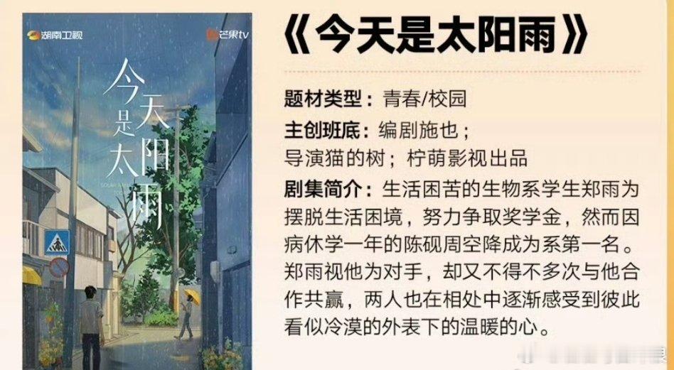 杨超越、董思成出演《今天是太阳雨》11月25日广州开机,而且还是湖南卫视的剧,排面有!!期待吗