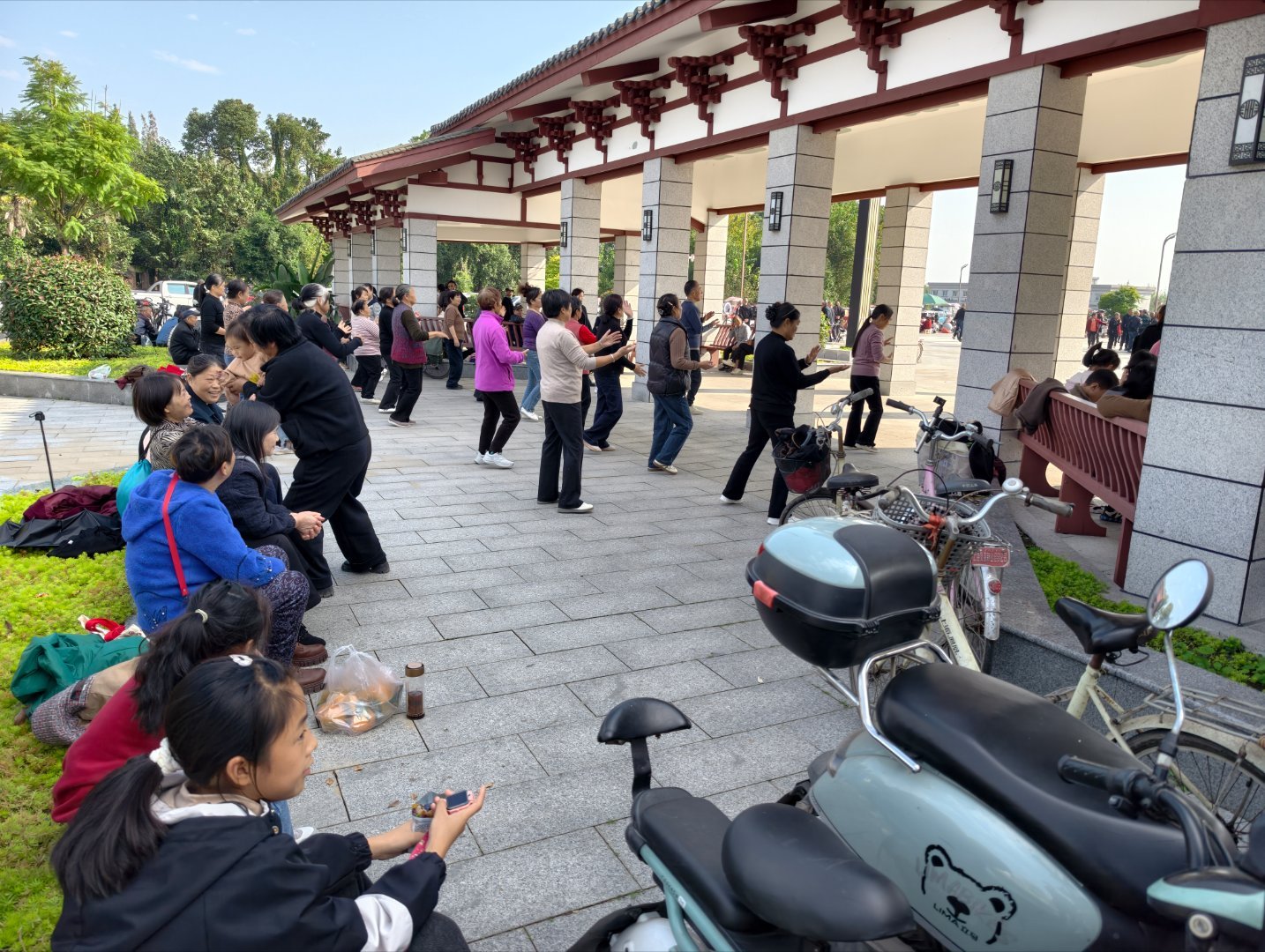 这边大中午不午休大妈在跳广场舞我们山西那边这个点都应该都在午睡