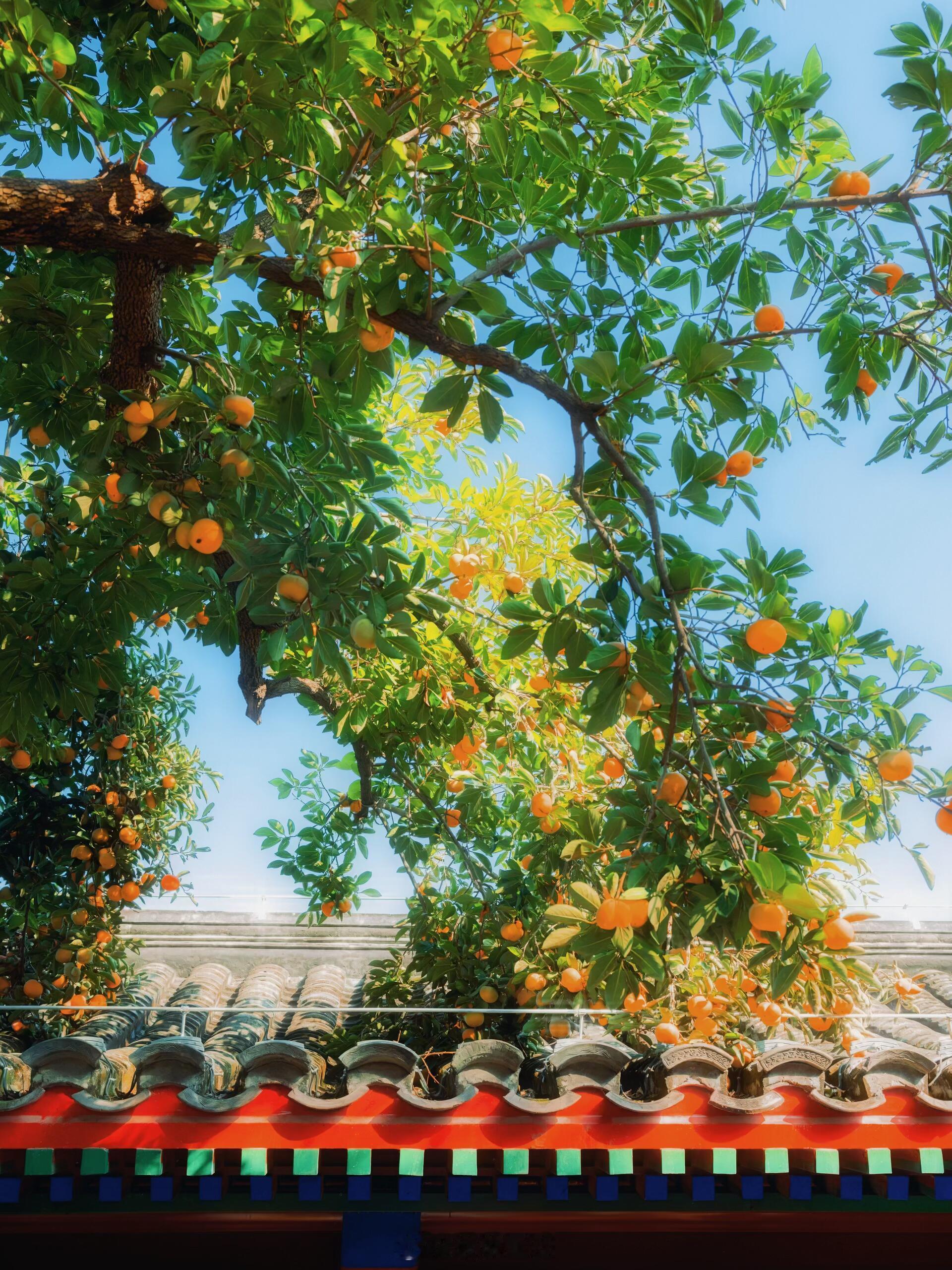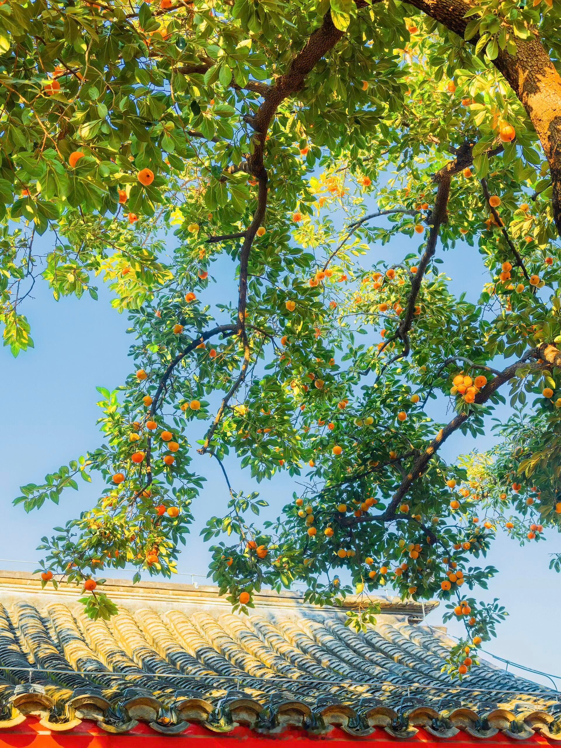 深秋拜访老舍故居,推开朱红木门撞见满树橙红,这些被时光浸润的果实,见证过多少窗前伏案的日夜,如今依然年复一年地红着,把先生最爱的北平秋色,定格成永不褪色的画面。