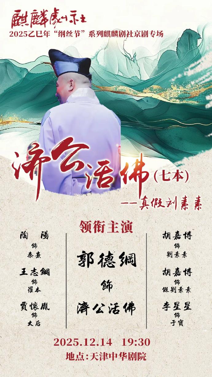 德云社2025年纲丝节已经确定时间、地点,在12月8日至14日,在天津中华剧院举办。今年纲丝节的主题是“天下纲丝共此时”,这句话,很符合郭德纲的气质。14日的演出已经官宣,是麒麟剧社《济公活佛》第七本。8日至13日的相关节目,还没有官宣。之前,德云社董事长王惠在直播间曾回应粉丝,是1月8日到14日。到底该信谁的呢?麒麟剧社在纲丝节的演出已经官宣,也已经开票。所以,12月8日至14日举办,是靠谱的。直播间,董事长王惠有可能少打了一个数字。
