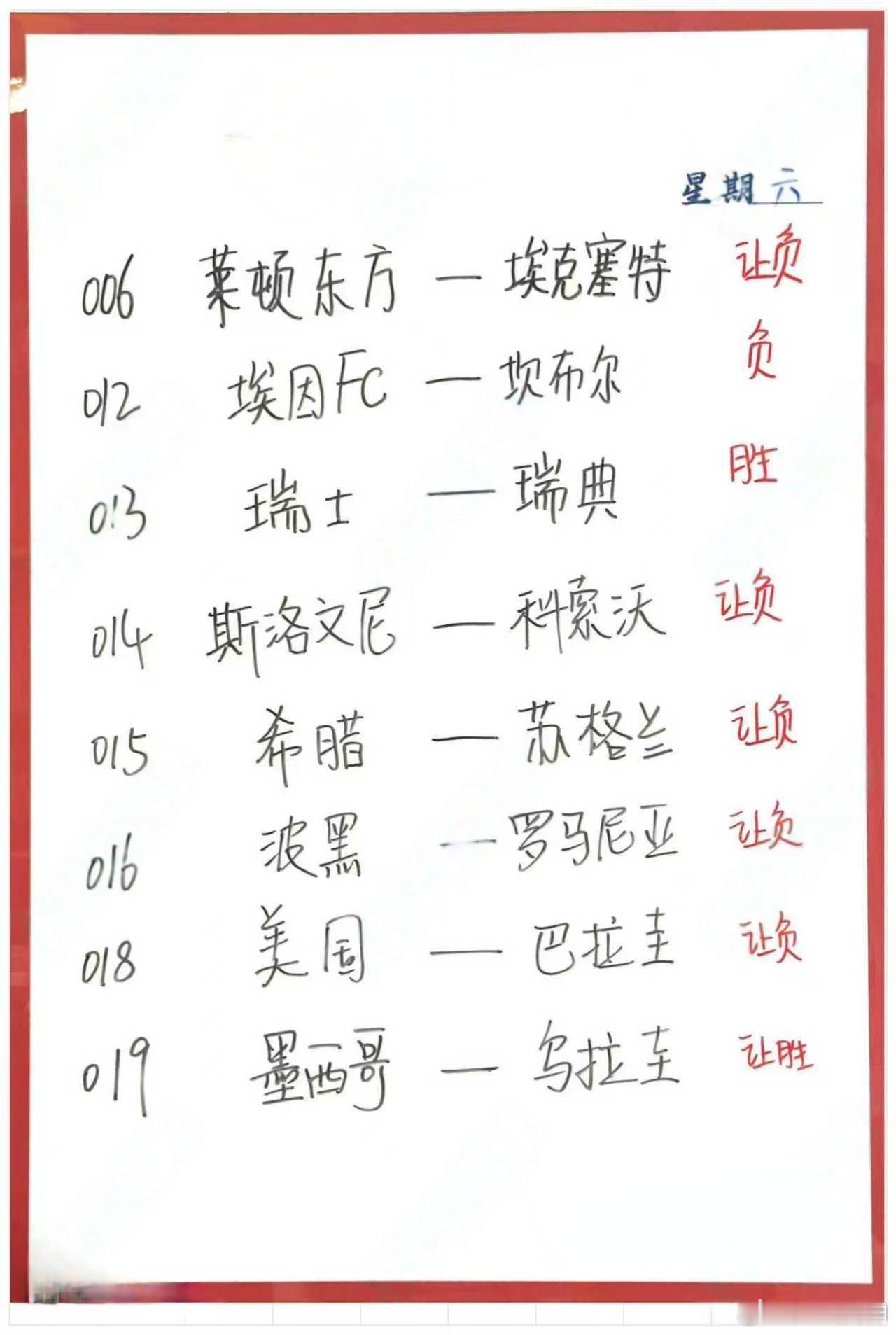11月15日001 哈萨克斯坦VS 比利时002 卢顿VS 罗瑟汉姆003 伯顿 VS 布莱克浦004 林肯城VS 唐卡斯特005 维尔港VS 威科姆006 莱顿东方VS 埃克塞特城 008 土耳其 VS 保加利亚009 塞浦路斯VS 奥地利010 列支敦士登VS 威尔士