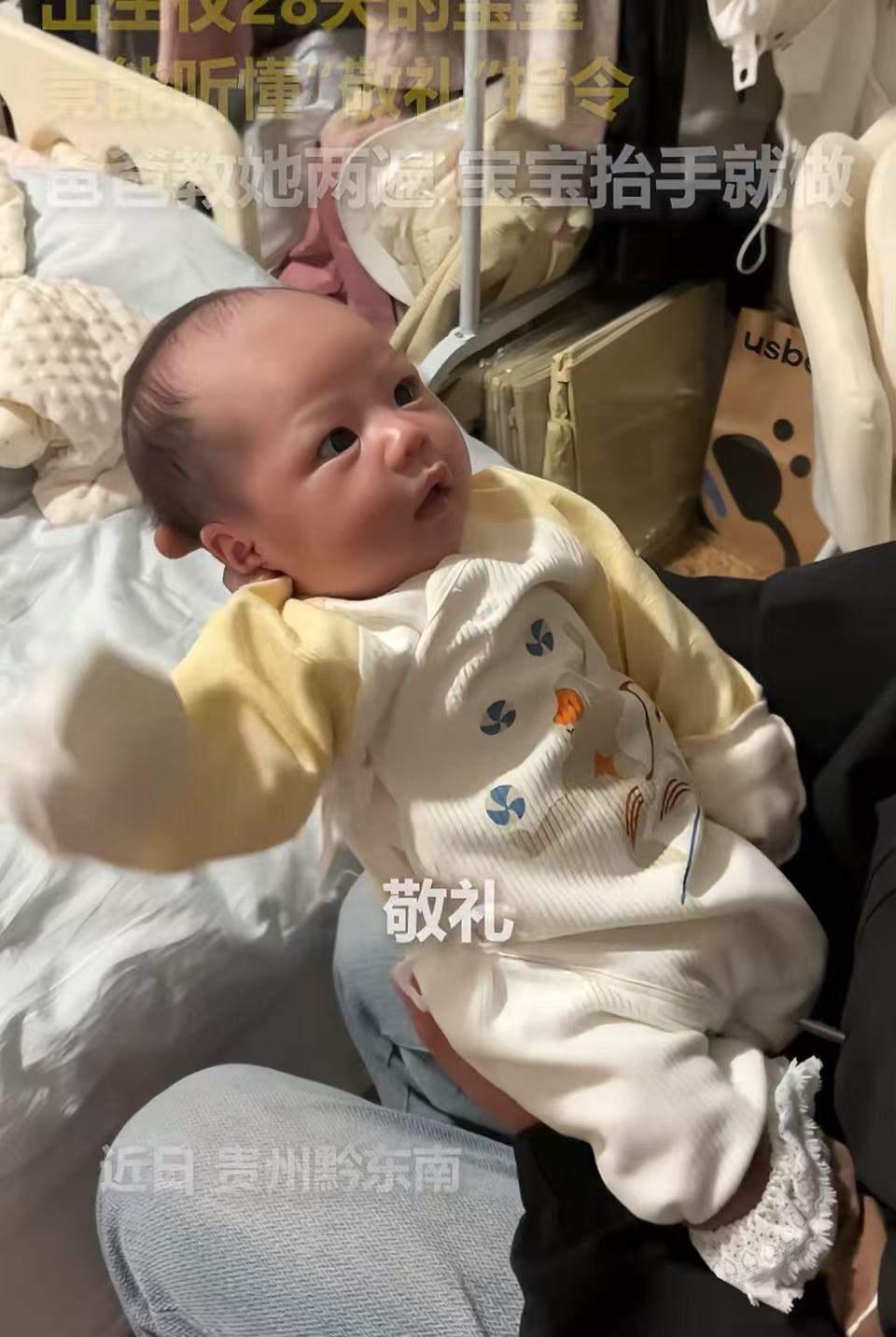 “科学解释不了!连人民日报都转发了!”贵州黔东南,出生仅仅 28 天的宝宝,竟然能听懂“敬礼”指令!网友: 有没有一种可能,曾经那些英雄已经陆续回来了! 孩子出生后,爸爸每天下班就迫不及待地往家赶,一进家门就赶紧把宝宝抱在怀里逗弄,那喜爱之情简直都要溢出来了,怎么看都看不够。 然而,更让全家人惊讶的是,这个仅仅28天大的宝宝竟然能“听懂”爸爸的一个动作指令——“敬礼”。每当爸爸轻轻举起手臂,宝宝居然会本能地将小手举起,像极了军人的标准动作。视频一经上传,立刻引发全民热议,甚至人民日报也转发报道,称这是“不科学也真实的奇迹”。 可是,真的是科学解释不了吗?还是我们忽略了一个更深层次的可能性?人在情感的共鸣里,往往会无意识地传递某些信号。比如,宝宝对爸爸的敬意和爱,可能以一种超出语言范畴的方式表现出来。这份“敬礼”虽然带着童真的模仿,却承载了人类最纯粹的情感连接。 更令人浮想联翩的是,网友们纷纷留言说:“会不会这意味着,那些曾经为了国家和家庭英勇奋斗的英雄们,他们的精神真的还活在我们身边,只是换了另一种方式在延续?”我们总说英雄已远去,但或许,他们并未真正离开。宝宝的这个“敬礼”,某种程度上就像是一种无声的传承,也是生命力和使命感的体现。 这背后,也折射出一个社会现实——我们对英雄的怀念和敬仰始终未曾停歇,而这份情感的延续,是对未来最深切的期盼。正是在这样的共鸣中,我们找到了心灵的慰藉和前行动力。 想象一下,未来的某一天,当这宝宝真正长大,是否会成为新的时代英雄?又或者,这份敬礼背后,寓意着一种希望,让我们相信,无论时代如何变迁,英雄精神永远是社会最宝贵的财富。 这不仅仅是一个宝宝的“奇迹”,更是一个时代的符号,一个让我们热泪盈眶的温暖瞬间。而你呢?看到这个视频,你第一反应是什么?是怀疑,是感动,还是想起了自己身边那些无名英雄?欢迎在评论区吐槽、分享,告诉我们你的故事和感受!因为,这样的情感连接,比任何奇迹都更加珍贵。