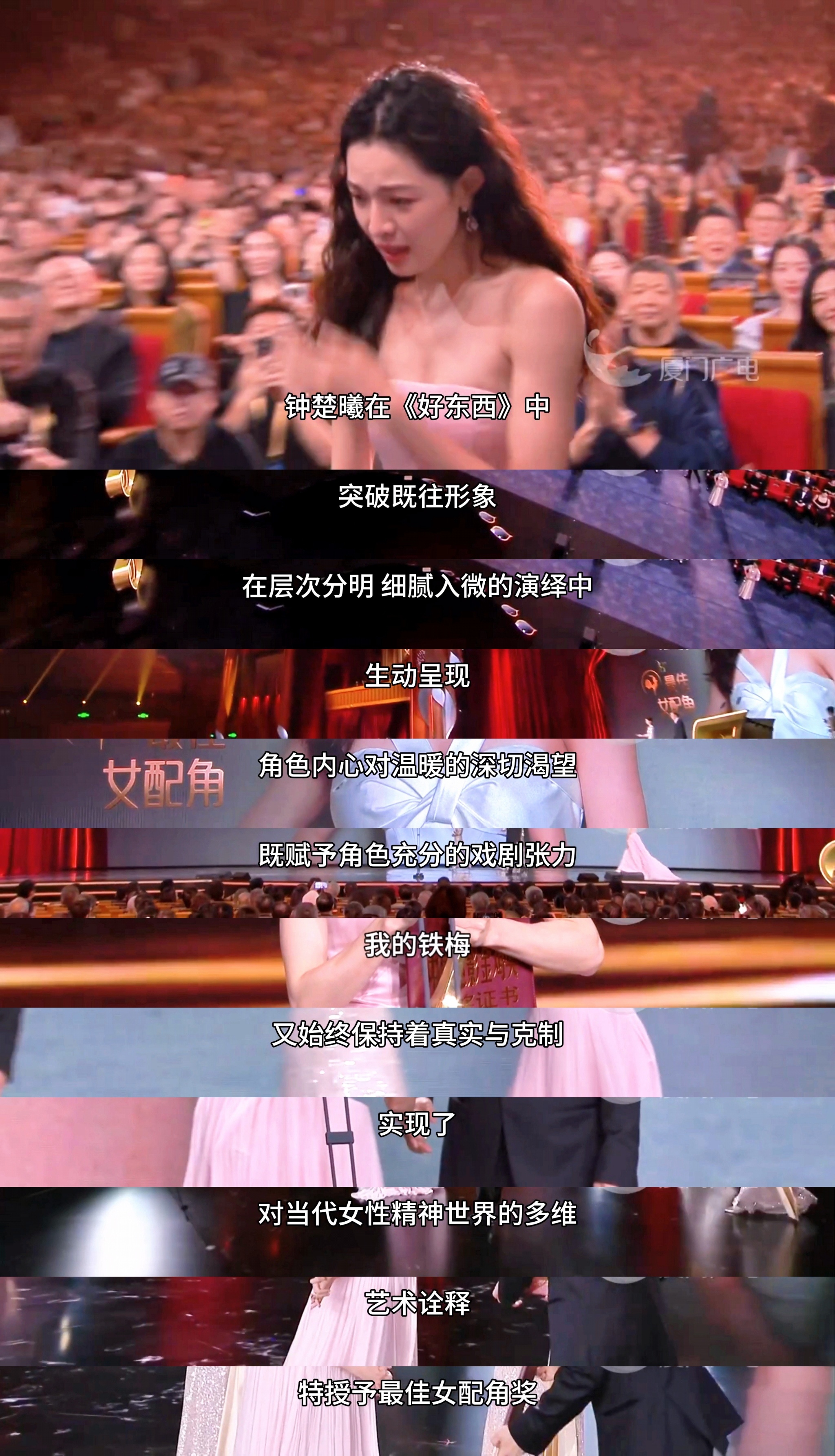 钟楚曦这段获奖感言,真的会鼓励很多正在托举自己或者正在怀疑自己的人。“我曾经在面对失败和质疑的时候,无数次地怀疑过自己,直到我遇到了《好东西》,它告诉我人生没有裁判,我们也不是超人,我们会犯错,会脆弱无能,但我们需要正直勇敢。我们永远比自己想象的要更强大,这种强大不是坚不可摧的,是经历风雨之后,依然会迎接明天的自己,也许颤颤巍巍,也许昂首挺胸。我现在就是昂首挺胸的,无论我今天有没有站在台上,我依旧会为自己打气,会抱紧自己,托举着自己,因为我已经很幸运了,而这份幸运这份幸运也是由很多人托举而成的。”所谓勇敢和强大,并不一定需要面不改色心不跳地面对一切困难,而是拥有直面失败和质疑的勇气,允许自己脆弱,允许自己哭泣,但请你继续抱紧自己、托举自己,始终相信你会是幸运的。👍小叶棒!!