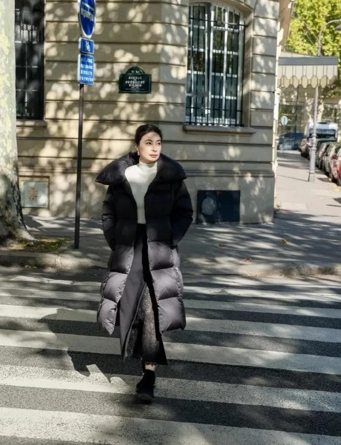 ✨郭晶晶这波时尚感直接杀疯了! 一身黑色长款羽绒服搭配白色高领内搭,简约又高级,在巴黎街头的光影里,把“豪门清流”的优雅和松弛感拿捏得死死的~ 果然是骨子里的大气,就算走时尚路线也这么有辨识度,这波“时髦转型”你打几分?