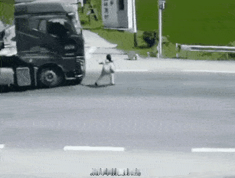 明知山有虎,偏向虎山行。这姑娘明明看见了大货车,不知道躲避,却要和大货车赛跑。 有时候人的念头是刹那间的,像这种肯定属于脑电波暂时短路了,很可惜。 安全无小事,平安既是福。