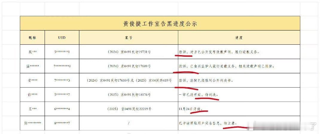黄俊捷工作室公示告黑进度!! 想知道是哪家的??