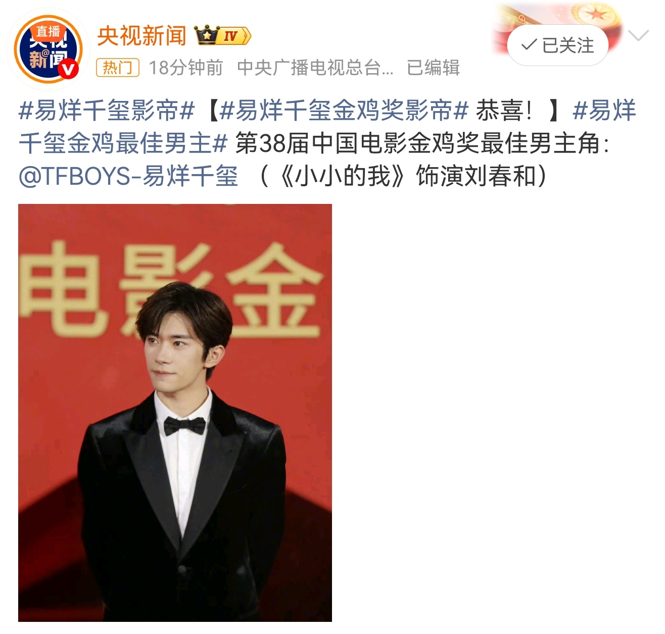 易烊千玺金鸡影帝,作为最年轻的影帝实至名归,妥妥的实力演技派