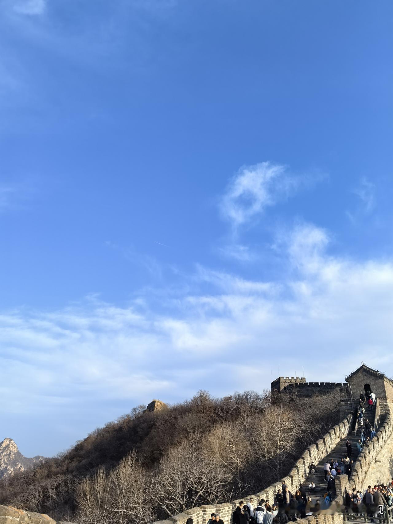 广东省、江苏省、四川省放秋假,一个人多、一个钱多、一个玩心大。 以往放假大家都去别人过腻了的地方去玩,这次北京没放,坐等四川的亲戚来北京打卡。 今天陪着去爬慕田峪长城,人居然还很多。遇见好几波四川老乡, 明显也是打卡环球影城后来爬的,小朋友拿着环影的周边。 还有很多老外打卡,看来单方面免签还是有作用的。 闲谈几句。一路上开车至少看到三辆车在环路、高速扔纸和烟头。 爬长城坐滑道下来,管理比较混乱,因为临近关闭,很多人还在排队,保安和工作人员喊了半天不要排了,但是通道没关闭,陆续还有人在继续排队,场面有些失控。 一路上遇到三起车祸,导致高速拥堵,大家出门还是要注意安全。 虽然已经过了层林尽染的时节,但是看到了水墨江山的盛景,感到了亲人团聚的温馨,感觉很好。(照片原创)