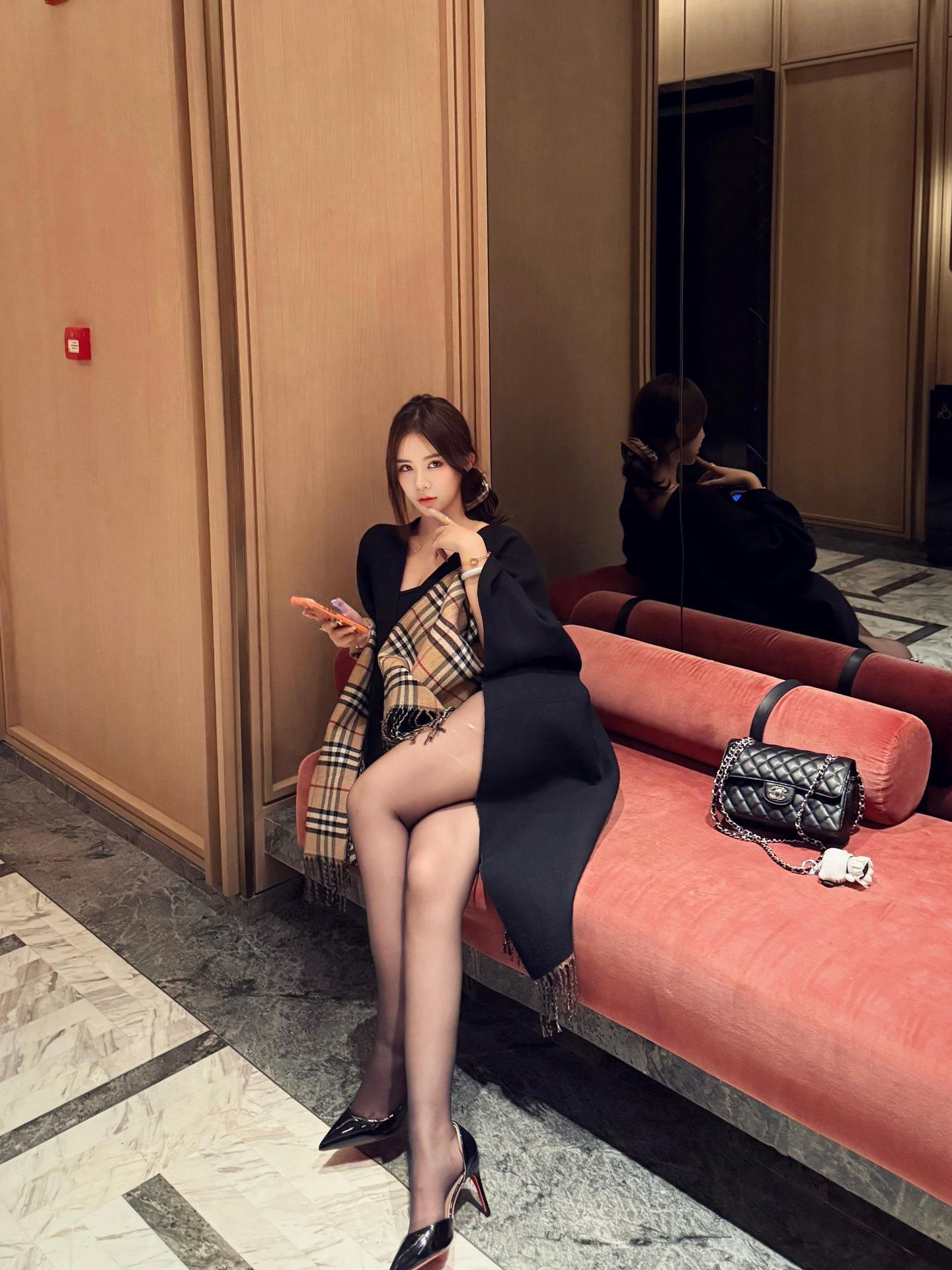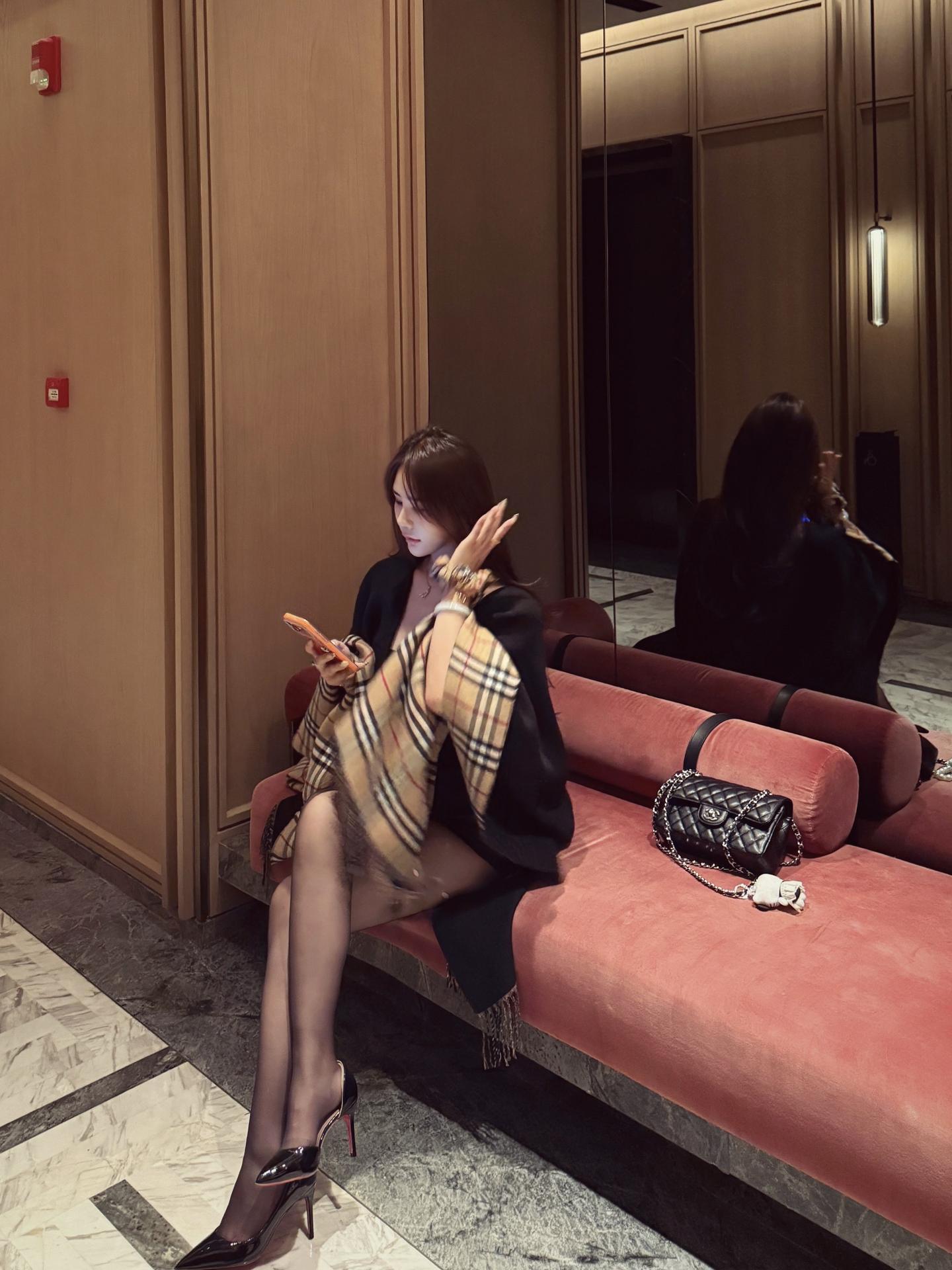苏提达穿着黑色10公分的高跟鞋游故宫,也是难为她了,不仅天气冷,并且还有台阶要上
