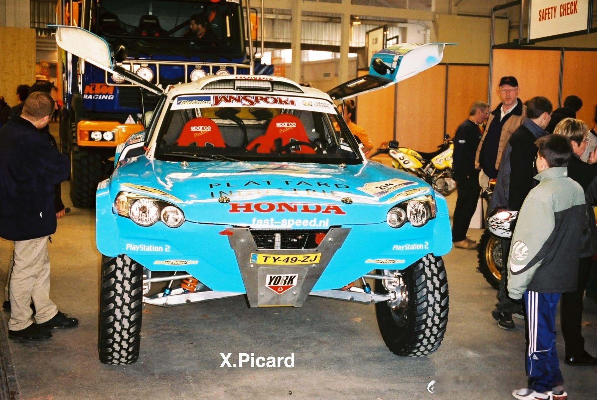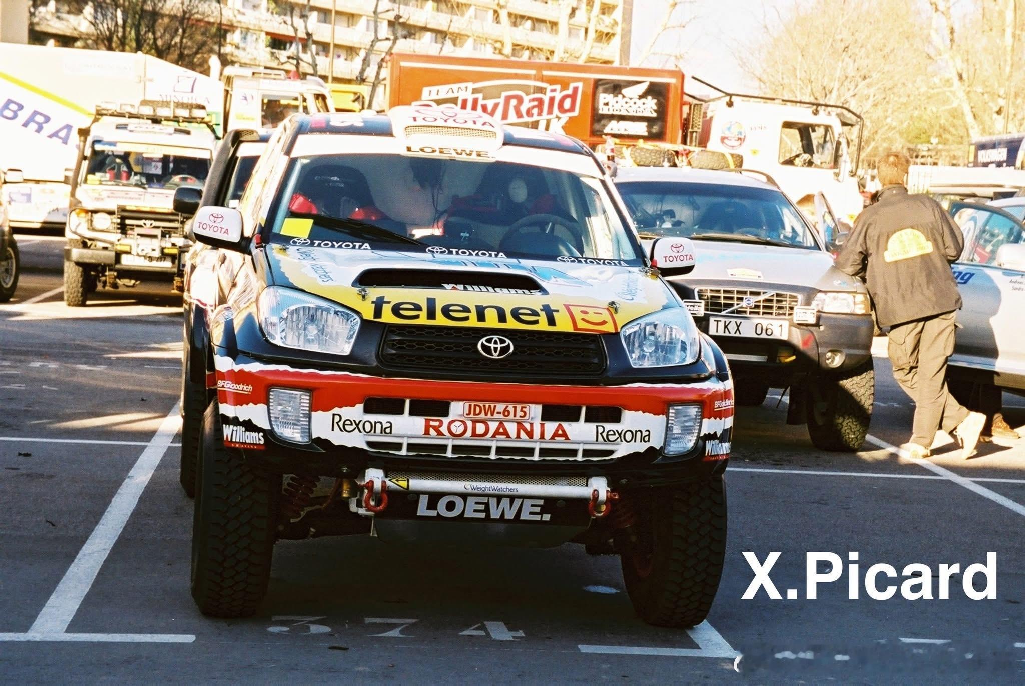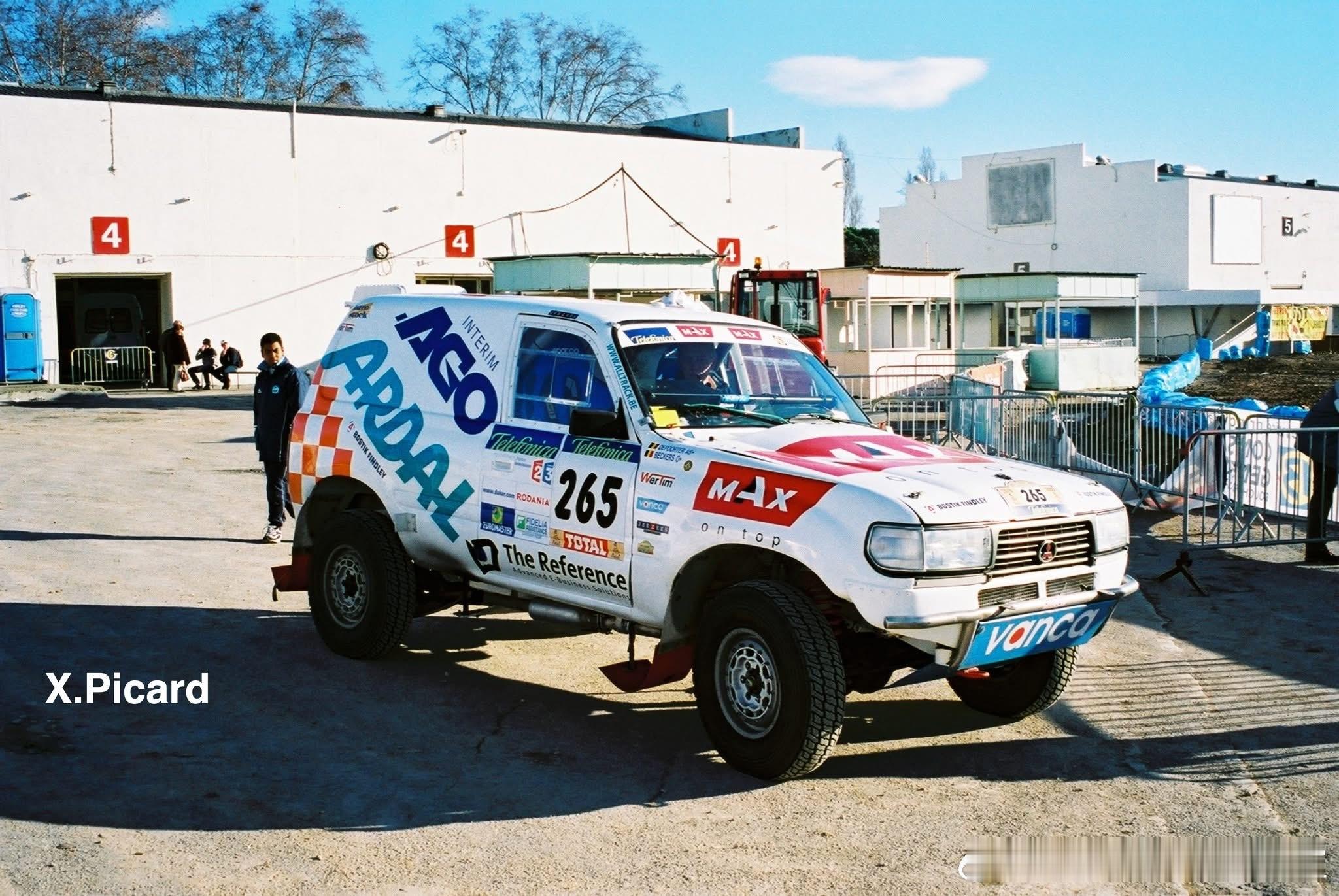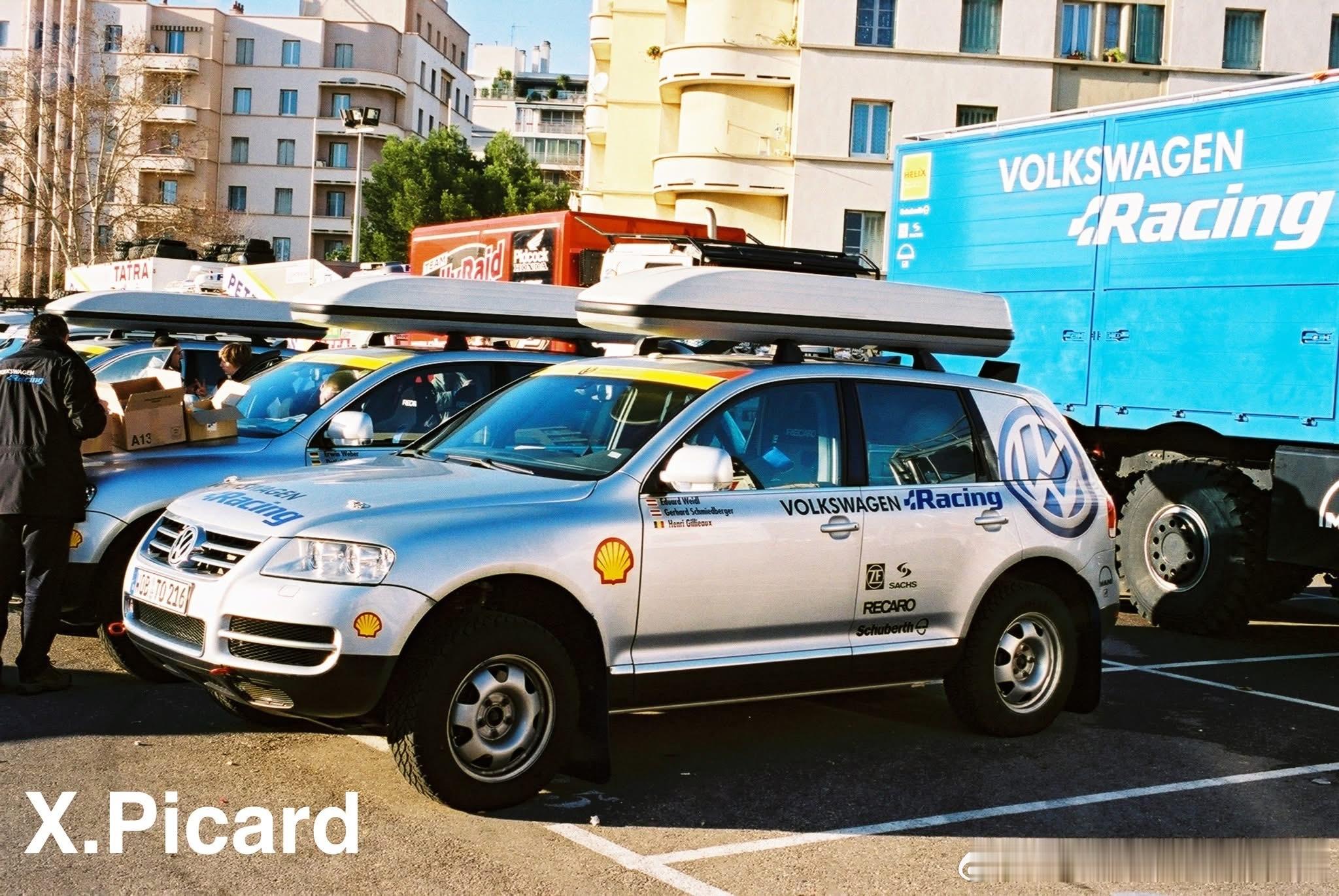 老照片~来自2003年巴黎达喀尔拉力赛,出车前的老照片,哪时欧洲的SUV车型开始崛起赛场上有了bba的身影甚至沃尔沃也开始参加,三菱系列在达喀尔拉力赛中正是巅峰时,日本车手增冈浩与领航员舒尔兹,驾驶三菱赛车夺冠。