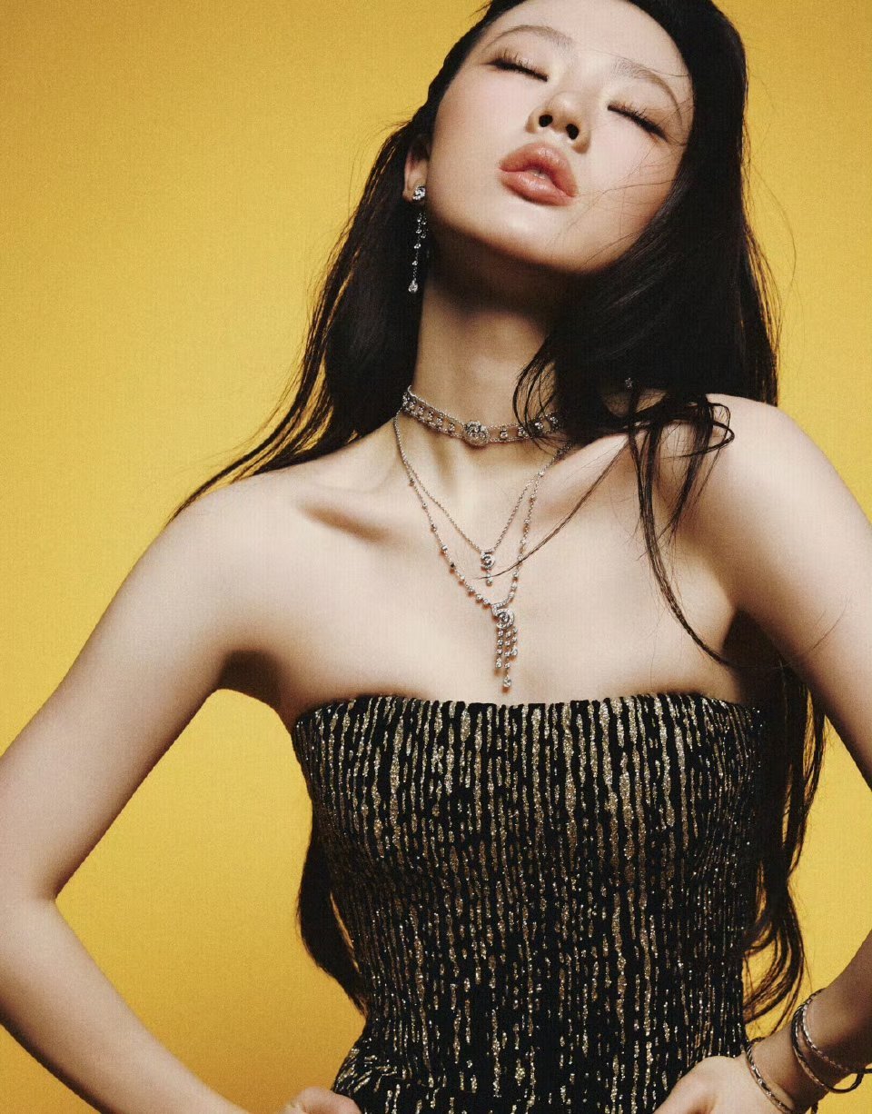 刘亦菲把死亡玫粉穿出了定制款的感觉,这种颜色普通人穿上分分钟黑三度,她居然能穿出