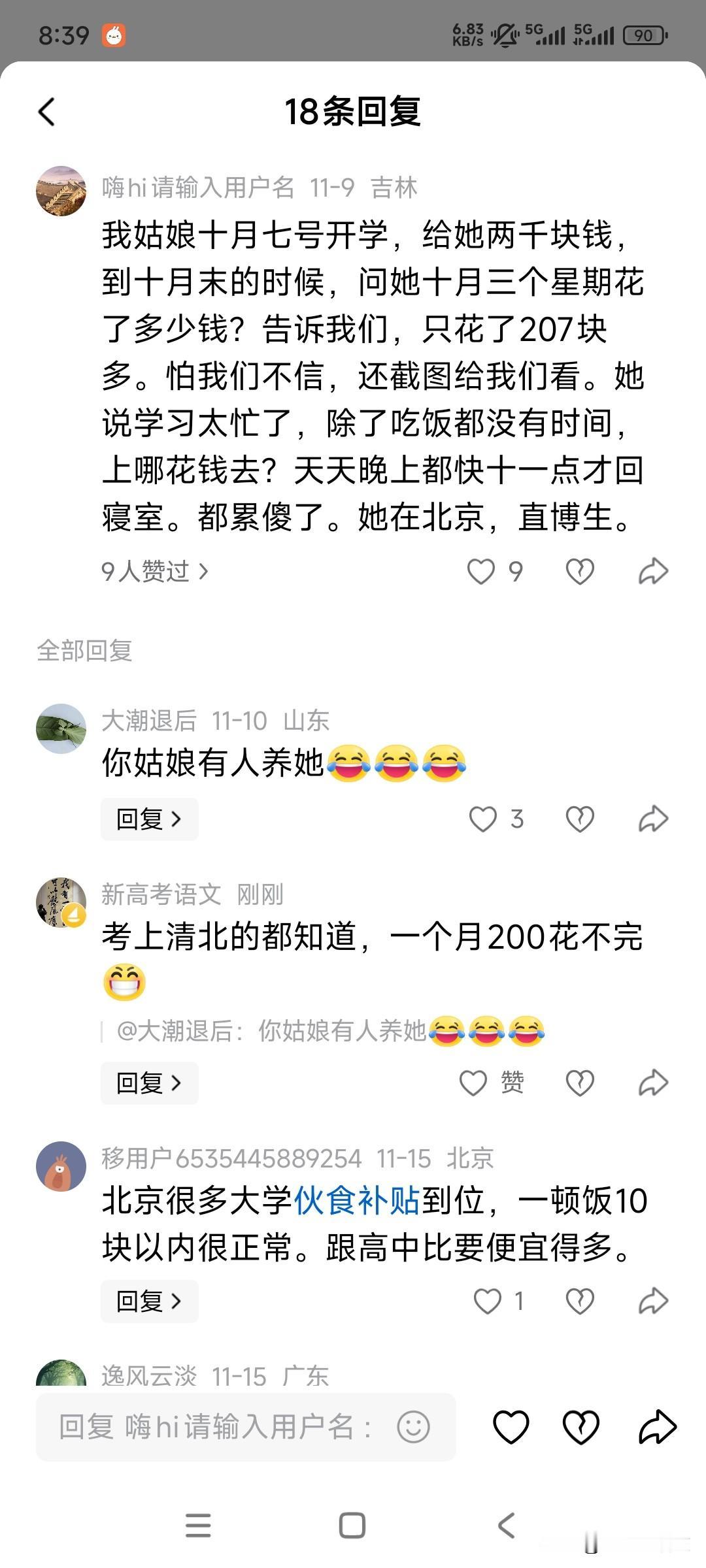 有很多人不知道的事儿! 上大学了,很多人开始抱怨每个月给孩子3000,孩子还不够花!晒惨,卖惨的挺多,其实,他们是真的惨! 现在有一个很扎心的事实就是如果孩子学习越烂,花钱就越多。 如果孩子能考上清北的话,考上清北的都知道,一个月200都花不完[呲牙]北京清北 清北录取 清北录取排行 清北班