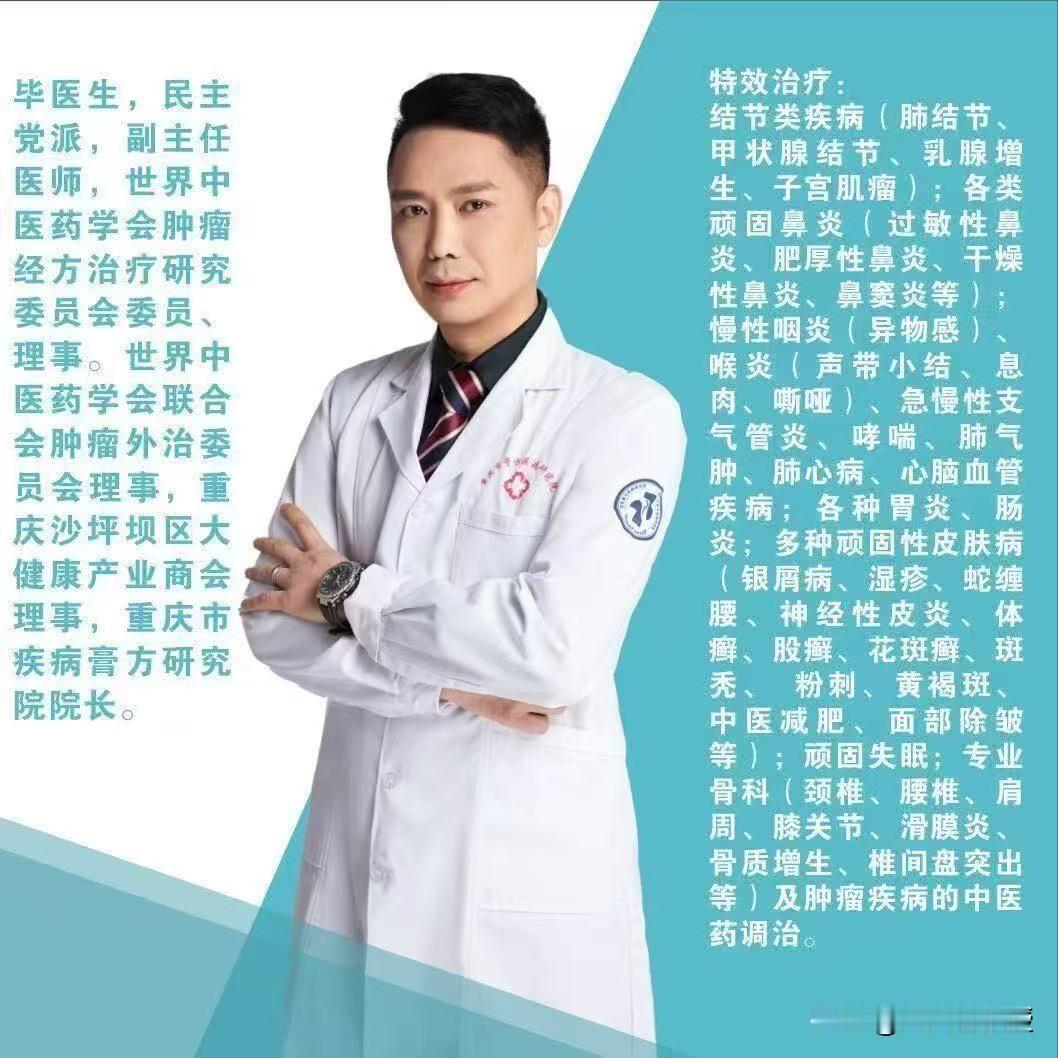 终于摆脱了顽固性过敏性鼻炎的困扰[祈祷] 我从小就有鼻炎,时而严重,时而自然好转。但成年后一直被顽固性过敏性鼻炎折磨多年,特别是每逢季节变化,进入冬天冷空气刺激都会清鼻涕不断、喷嚏不断、鼻子发痒、 眼睛有时也痒, 晚上还会造成鼻塞,难以睡觉。 看过不少医生,用过不少药,包括很多大医院 有时能暂时解决,但却反反复复,让人苦不堪言。 去年秋天经老乡推荐,抱着试试看的心理,来到重庆小龙坎毕浪诊所找毕医生治疗。毕医生毕业于成都中医药大学,他的疗法很独特,鼻子局部中药加整体调理 价格不贵 没想到一周多后,所有不适症状完全消失了,效果超出预期!而且一直未复发 去年冬天换季的期间都没有被过敏性鼻炎折磨。 今年又从夏秋进入了冬季,我一直担心会不会像以前多年那样复发;但经历了最近重庆几次气温冷热反复,我的鼻子经受了考验,过敏性鼻炎没有像往年那样复发。 看来,我终于摆脱几十年的鼻炎困扰,开启轻松生活!有同样烦恼的朋友,不妨去试试!过敏性鼻炎