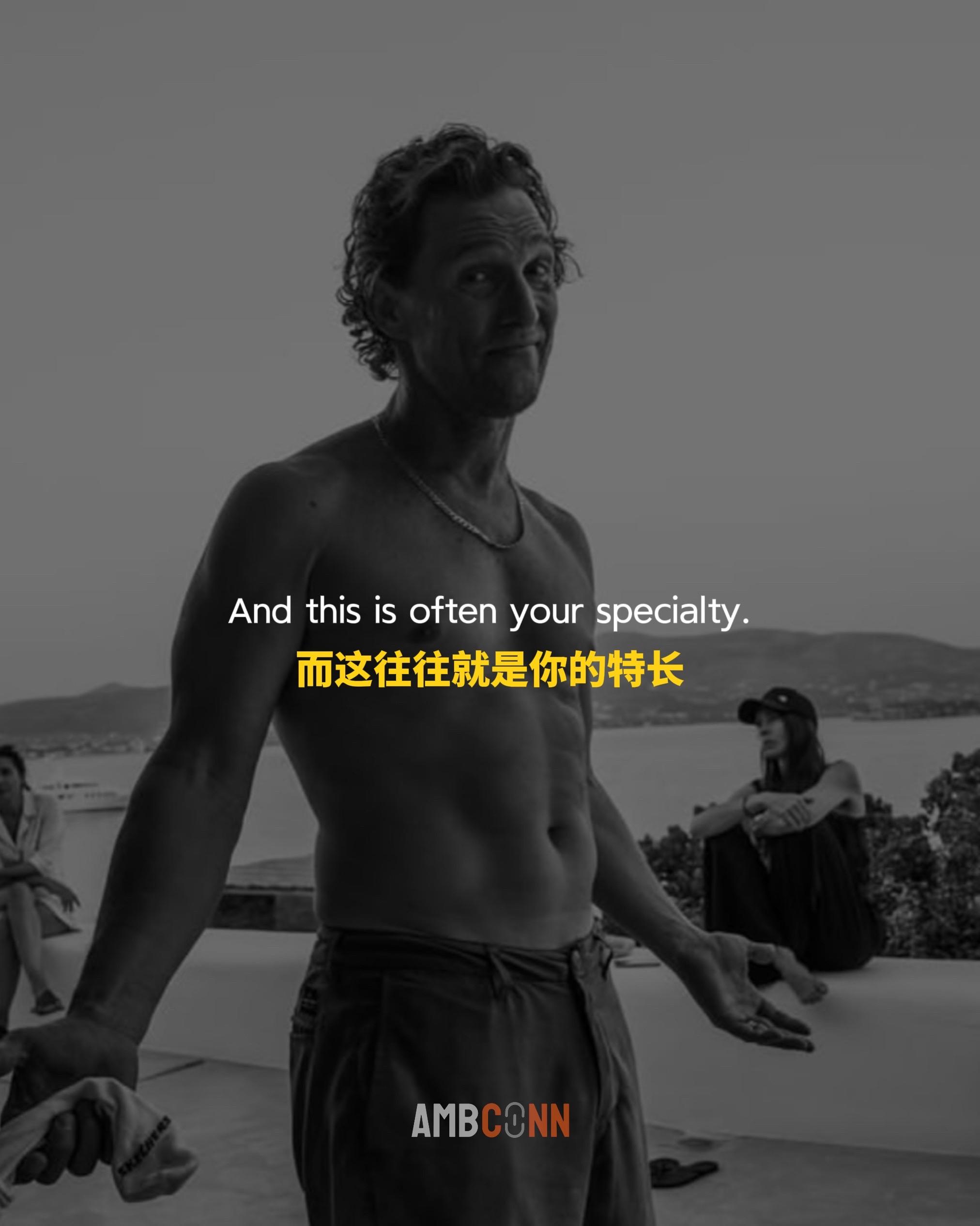 纳瓦尔:找到那些你乐在其中旁人却视为工作的事 对别人是苦差事,对你却是享受,他们只是为了获得其他好处,而在你眼中这是艺术,这给你带来快乐,这让你全神贯注,你是为了兴趣,他们只为糊口,越早做自己擅长的事,竞争就越少,勇敢做真实的自己。