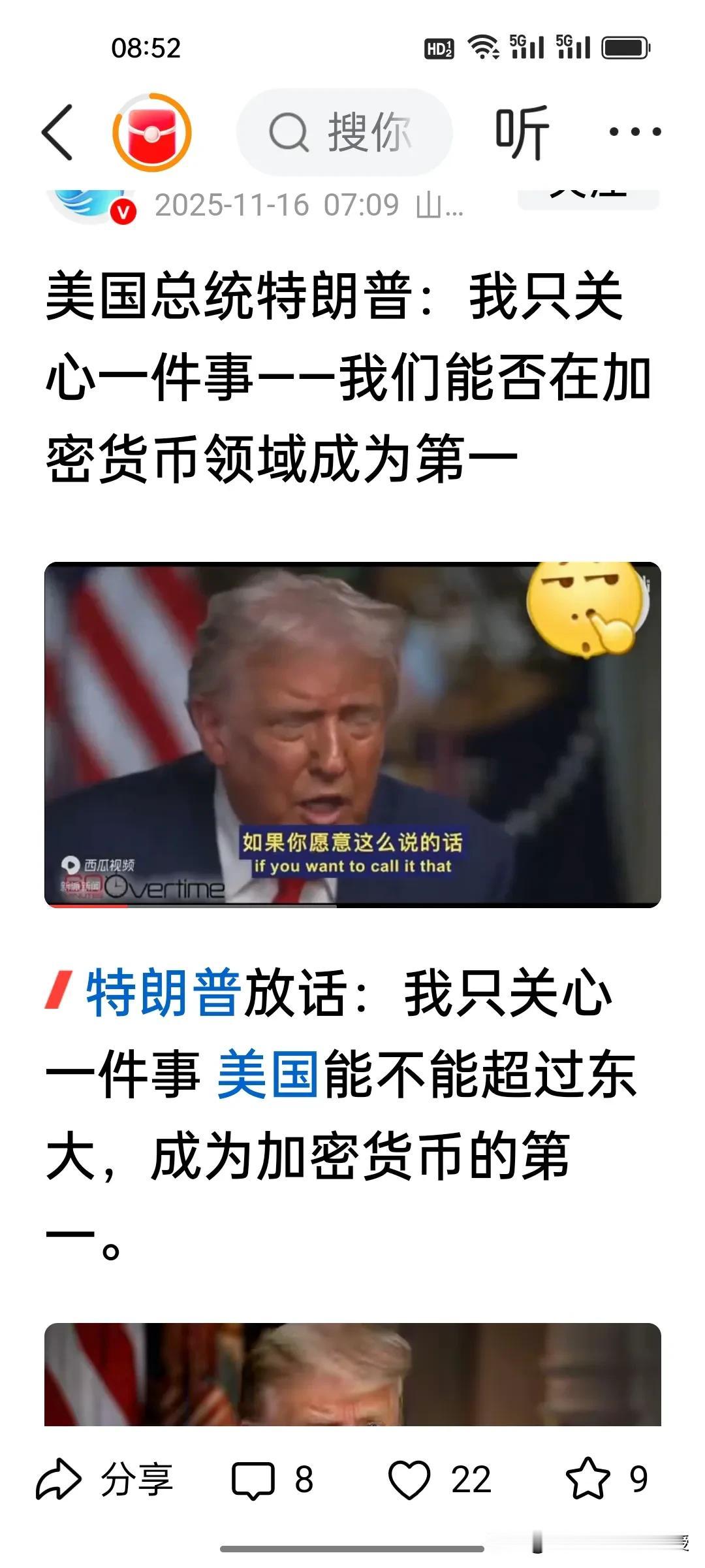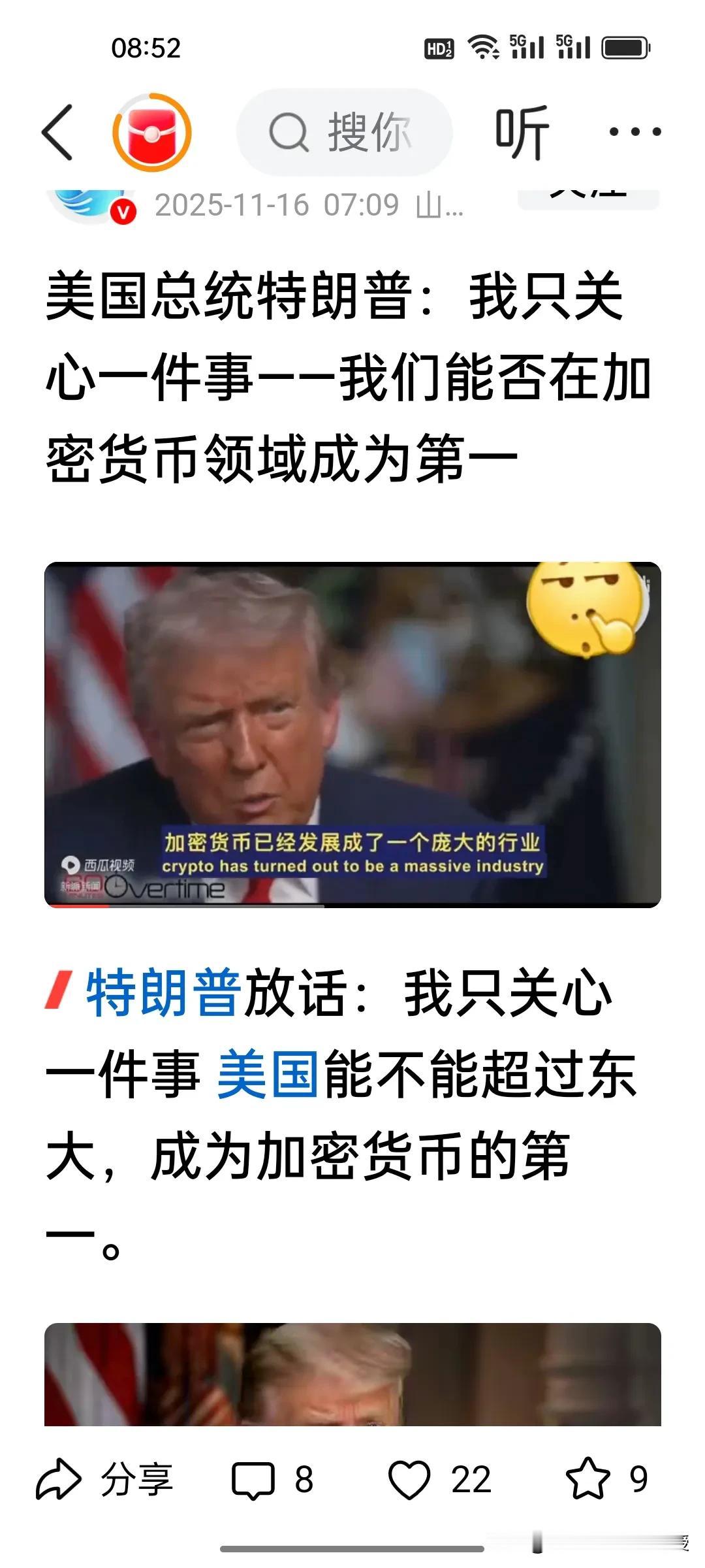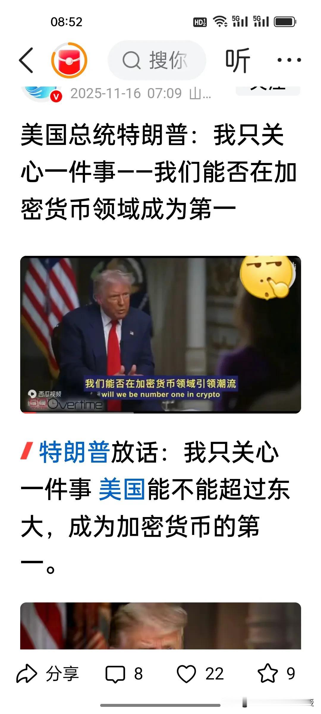特朗普现在的聚焦点变了,不再关注关税,也不关注人工智能,而是只关心一件事,加密货币能不能超越中国成为第一。作为全家都是币圈爱好者,最近又和赵长鹏达成一致,特朗普想发展币圈的雄心人尽皆知,拜登反对的,他都要支持。毕竟炒币致富的速度比盖房子赚钱快多了。