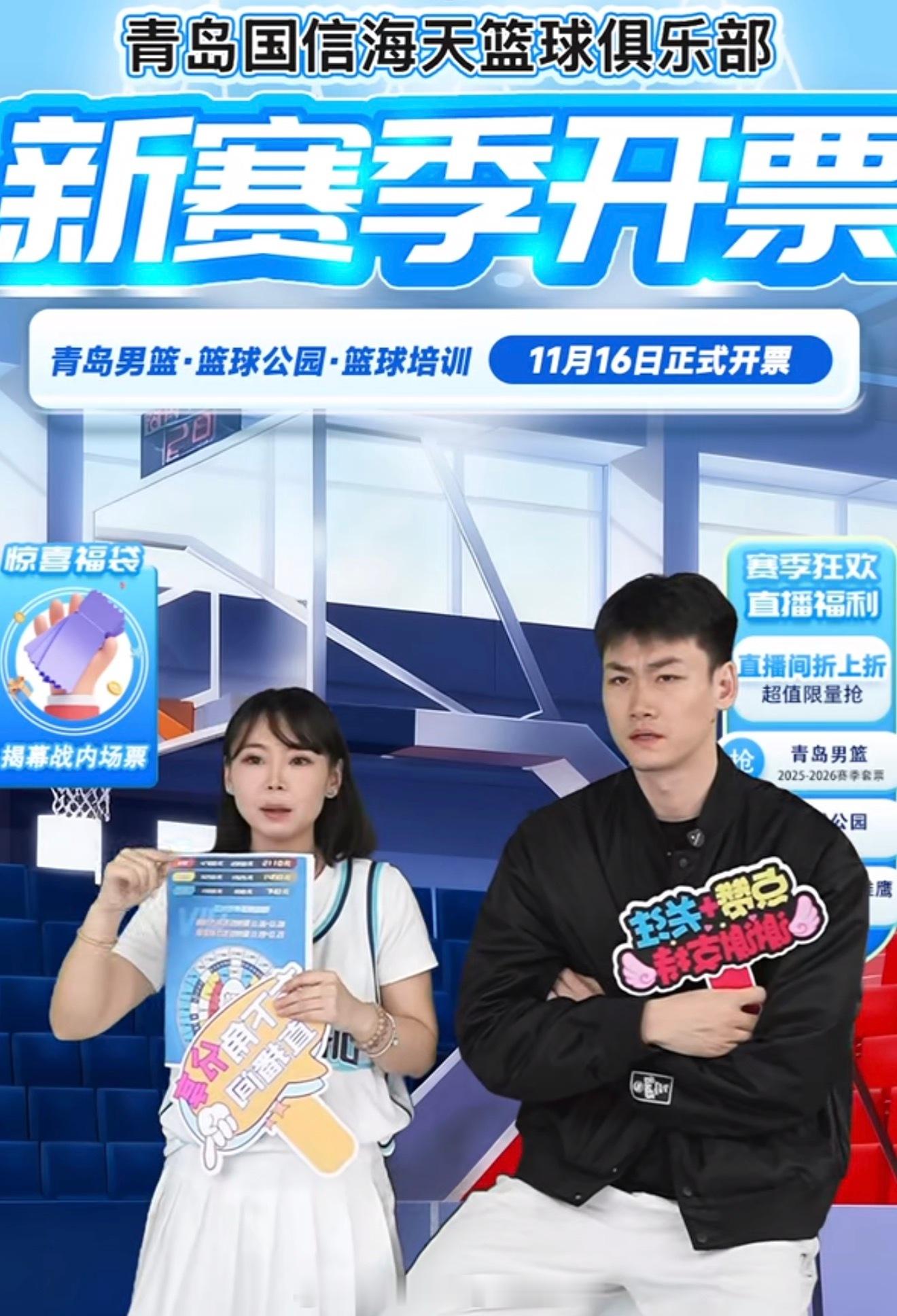 太拼了,青岛国信男篮为了新赛季的套票销售将王睿泽请到了直播间进行宣传