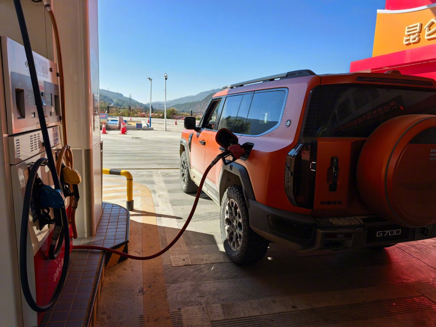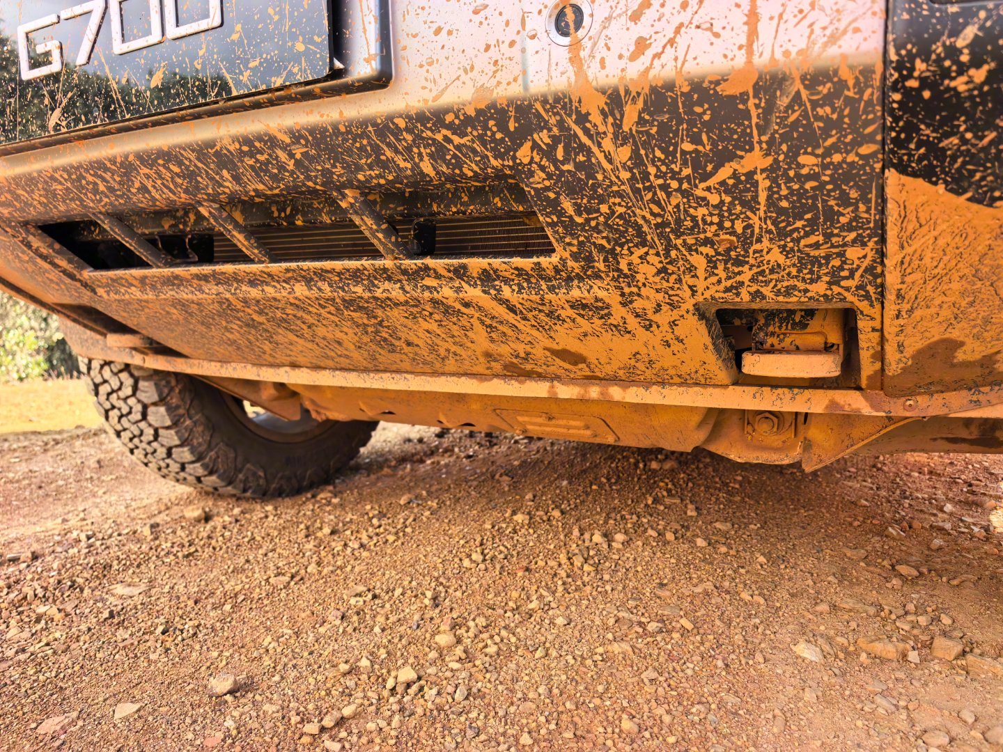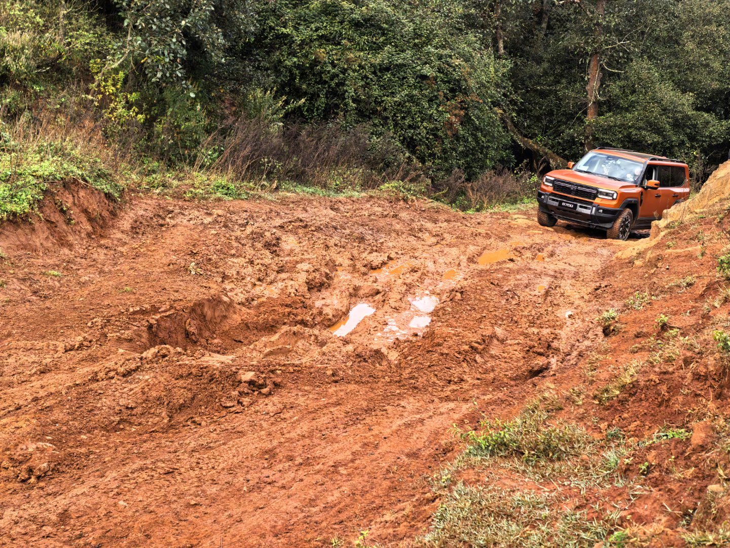 纵横G700的硬越野配置足够混蛋:空悬升最高离地有320mm,很高。970mm涉水。前后硬锁。后桥低速扭矩放大挡。大梁。底盘原厂2mm钢护板。天际屏常驻越野信息,直观。前后拖车钩直接外漏,好用!100升超大油箱,续航老猛。