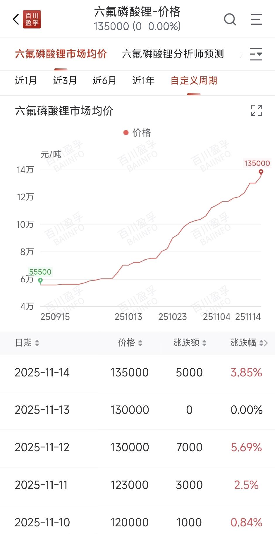 周末六氟继续涨3.8%,VC继续涨20%。六氟百川价格来到135000,散单已经
