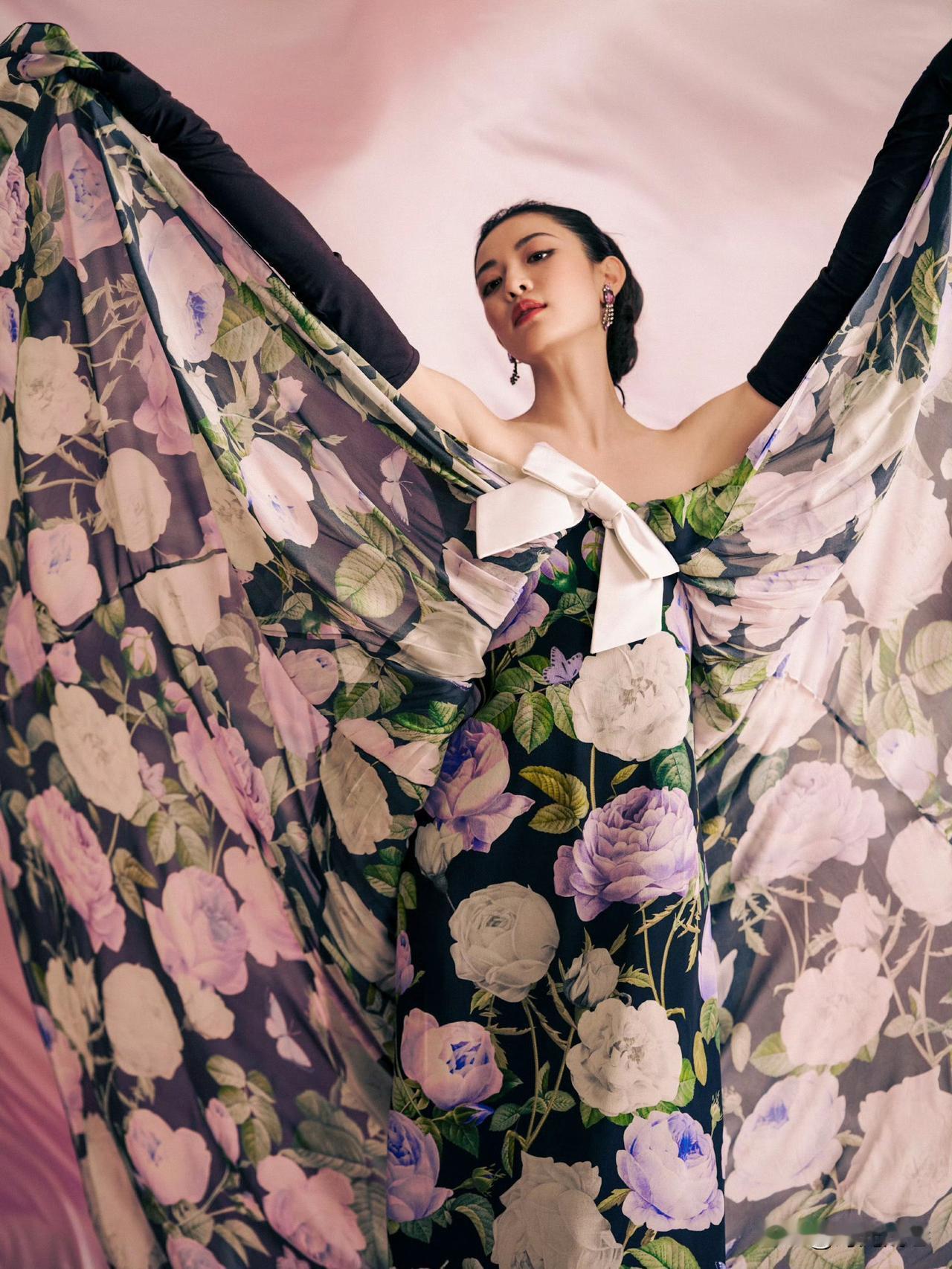钟楚曦身穿印花长裙翩翩起舞,犹如飞舞的彩蝶一般娇艳欲滴,柔美灵动!