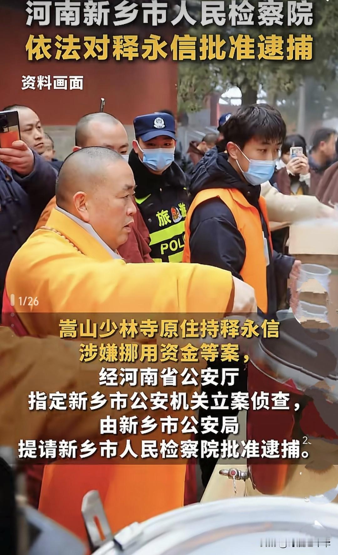 释永信胖和尚涉嫌多项职务犯罪,被正式批捕。不知道他那些姘头和孩子又怎么处理呢。