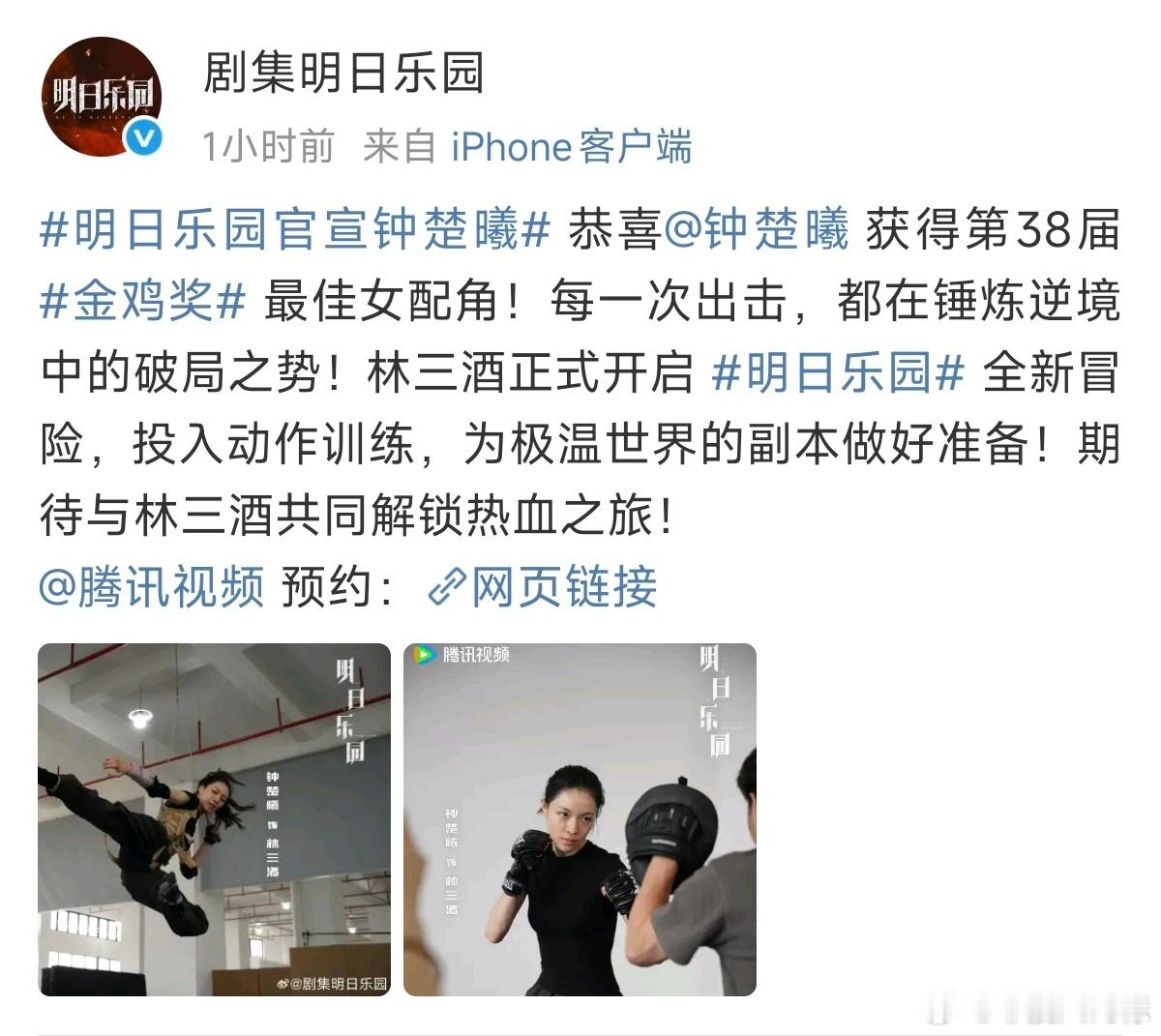恭喜钟楚曦获金鸡奖最佳女配角!《明日乐园》正式官宣她饰演林三酒,极温副本蓄势待发,她以动作训练筑牢根基,用破局之力开启热血冒险,敬请期待!