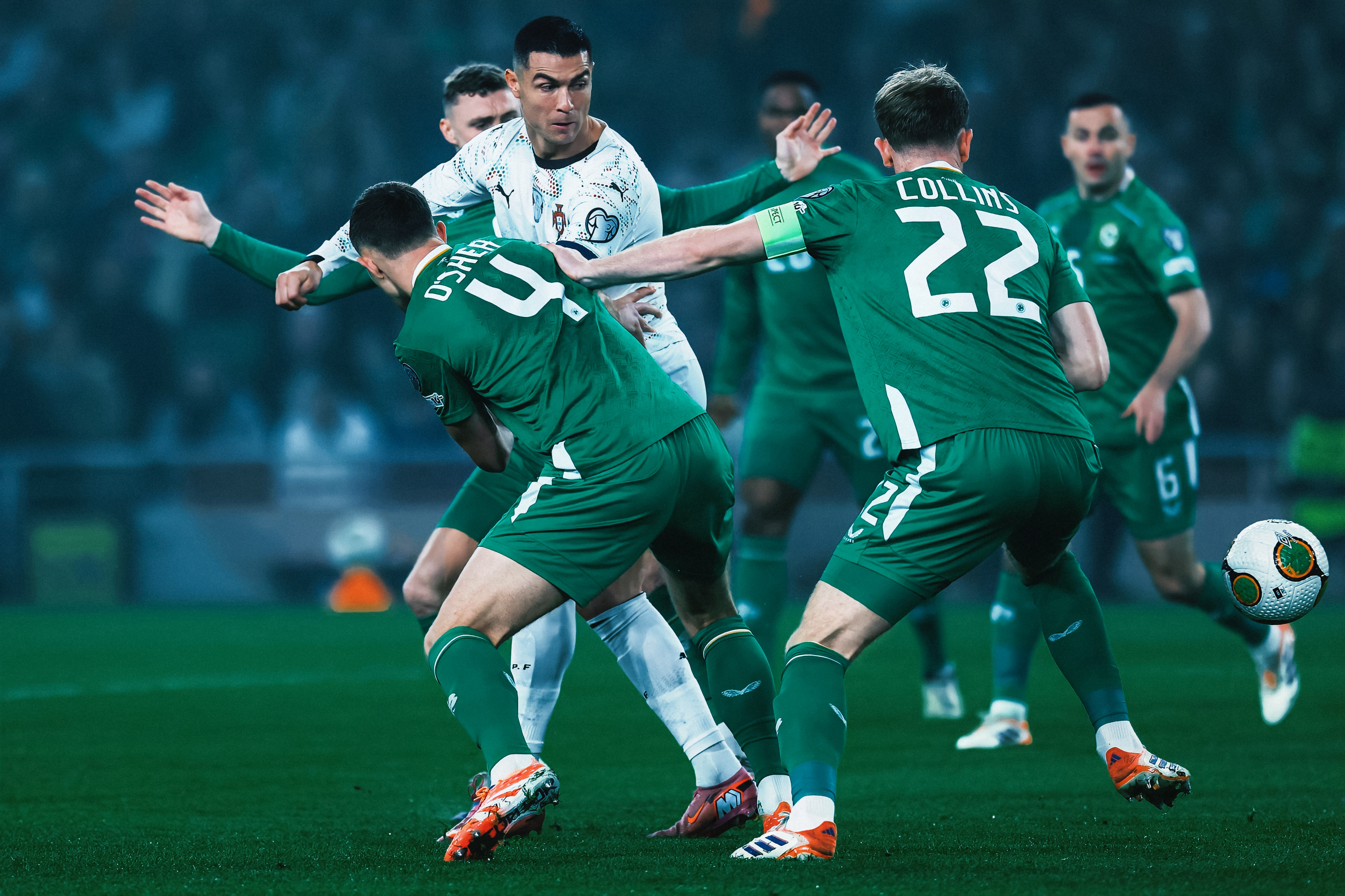 🛑 葡萄牙足协(𝑭𝑷𝑭)准备为C罗提交辩护,力保葡萄牙队队长受到最低处罚(停赛一场)。据«球报𝑨 𝑩𝑶𝑳𝑨»了解,葡萄牙足协正在准备向国际足联(𝑭𝑰𝑭𝑨)提交一份陈述,以期让因在葡萄牙队0比2负于爱尔兰队的比赛中吃到红牌而对克里斯蒂亚诺·罗纳尔多实施的处罚仅为停赛一场,即最低处罚。 💭 葡萄牙足协主席佩德罗·普罗恩萨直接参与了这一过程,以及葡萄牙方面对国际足联纪律委员会启动的纪律程序的回应。国际足联纪律委员会预计将在2026年世界杯预选赛本轮间歇期后的会议上做出决定,也就是本月底或12月初。💭 在此之前,葡萄牙足协将陈述其为C罗辩护的理由,主要基于三点:❶» 爱尔兰队主帅营造了敌对氛围,他曾称罗纳尔多在上一场在阿尔瓦拉德球场(鲁本·内维斯在补时阶段进球,葡萄牙队1比0获胜)的比赛中影响了裁判判罚;❷» 是事件本身,克里斯蒂亚诺明显被拉扯(这种情况在国家队的这场比赛及其他对决中都有发生),最终因不受其扰而做出反应;❸» 是,或许也是最重要的一点,他没有不良记录,因为这是他在国家队200多场比赛(确切地说是226场)中的首次被驱逐出场。🌟 如果葡萄牙足协的努力成功,那么它将确保克里斯蒂亚诺·罗纳尔多仅错过本周日对阵亚美尼亚队的比赛,这场比赛对2026年世界杯出线形势至关重要。否则,后续可能的处罚涉及的比赛将是世界杯决赛阶段的首批赛事。 (配图为爱尔兰队针对C罗的严密防守与拉拽)
