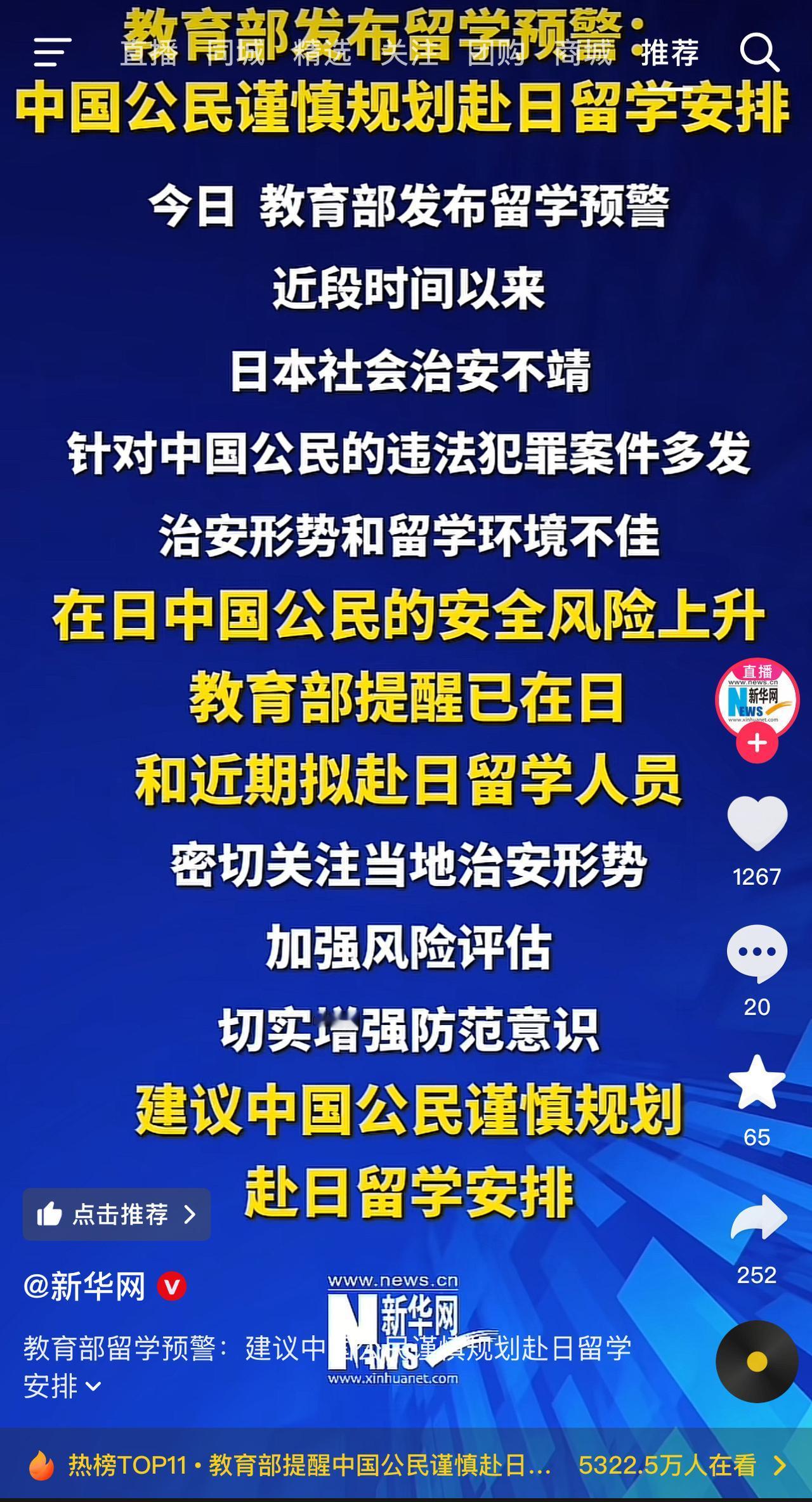 看来这真是备战了啊,不仅近期别去日本,往后余生都别去了,连教育部都发布留学预警了:留学都别去日本了!他们那本来也不可能学到啥啊?历史都篡改,三观都不正的地方,能学到啥?再说一个或许即将在地球上“消失”的民族,它的学历能有含金量吗?[捂脸][捂脸][捂脸][捂脸]
