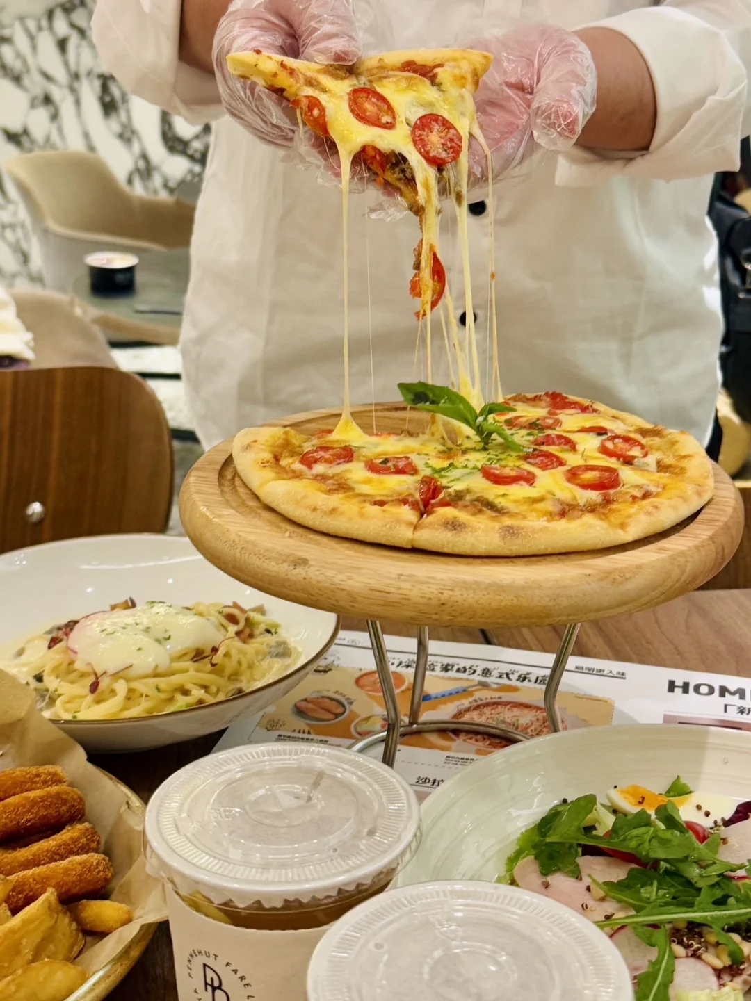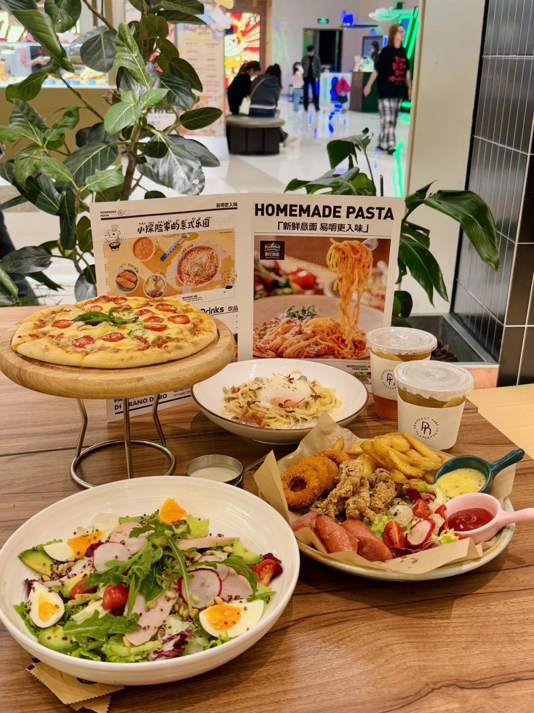 在海岸城挖到宝了!! 暖色调的氛围感环境好舒服 半开放厨房能看见师傅现做意面和披萨的过程 食材和制作都看得见 吃得超安心~ 🍅经典番茄肉酱披萨 芝士多到犯规!拉丝能绕好几圈 番茄的酸甜和肉香完美融合 每一口都是幸福暴击💘 🍝温泉蛋奶油菌菇意面 溏心蛋划开的瞬间太治愈了! 蛋液裹满手工面条 搭配浓郁奶油酱 口感顺滑细腻 一口就爱上~ 小吃拼盘也都很在线 现点现做 热气腾腾的上桌 性价比很可 分量十足 约会聚餐都很适合~ 📍Pennehut畔尼意面(海岸城店) ✨闭眼点不踩雷 快约上饭搭子冲!
