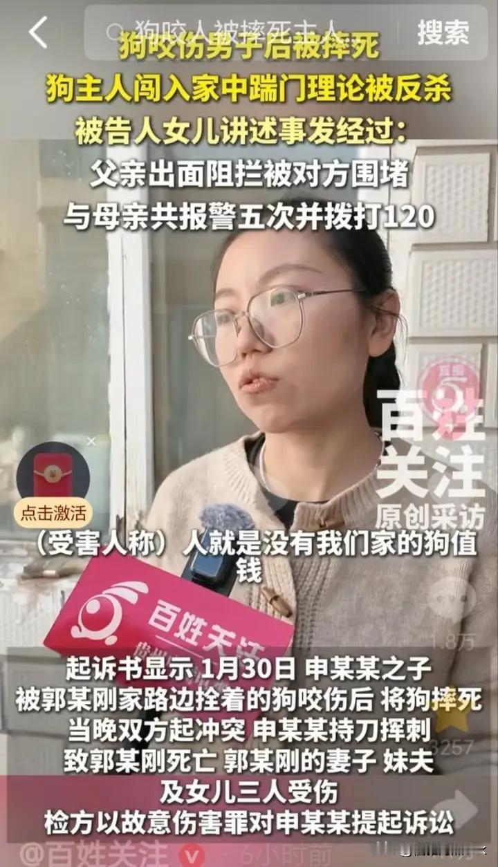山西“狗伤人血案”之所以引全网关注,因为触碰到老实人底线,拷问非法入侵下的正当防卫如何守护安全感。 山西“狗咬人血案”,其实问题很简单,当事人都是邻里关系,却因为一只狗造成一死三伤的局面,实属不应该。 按一般的解决方法,狗将人咬伤,不仅要自觉报销狂犬疫苗的费用,还要买点礼品上门看看,至于狗被摔死,伤人在前,将狗适当折点价,互退一步海阔天空。 然而,现在有的人倒行逆施,把狗看得比爹娘亲,比他人的性命更重要。郭家就是如此,嚣张地喊着“你们家人命没我狗值线”,持着铁锹,棍子上门为狗报仇,不给协商的机会。 近几年,狗咬人引发的案件不在少数,许多狗主人蛮横无理,狗咬人可以置之不理,人打狗就像亲儿子样心疼。 人在家中坐,祸从门外来,最安全的家有可能不安全了,老实人拼命避祸,坏人步步紧逼,如何拿起正当防卫的武器拥有份安全感,是老实人最想看到的答案。 申家怕事,但事躲不过,找人调和,郭家不接受,报警调解,郭家不配合,锁起院门,郭家踹门而入,郭家霸道的用自己的方式解决,申家不得不接招,退无可退,相信法律的公平公正。 大家在为这事感到惋惜的同时,更多人则是希望恶人得到惩治,老实人能通过法律更好的维权。 该案之所以引发全网关注,因为它触碰到了老实人的安全底线,两案并审,老实人作为被告做正当防卫辩护,老实人作为原告起诉非法入侵。 更多人希望通过这个案件,让养狗的人文明养狗,让嚣张跋扈的人多份约束和理智,让老实人的安全更有障。