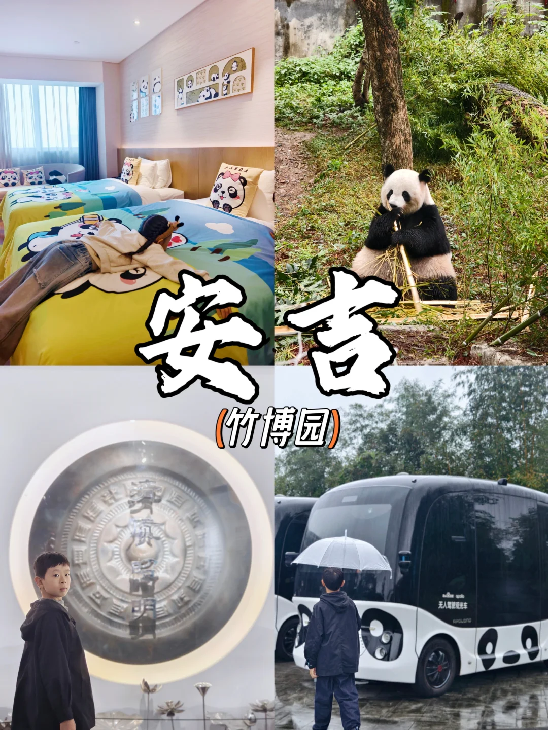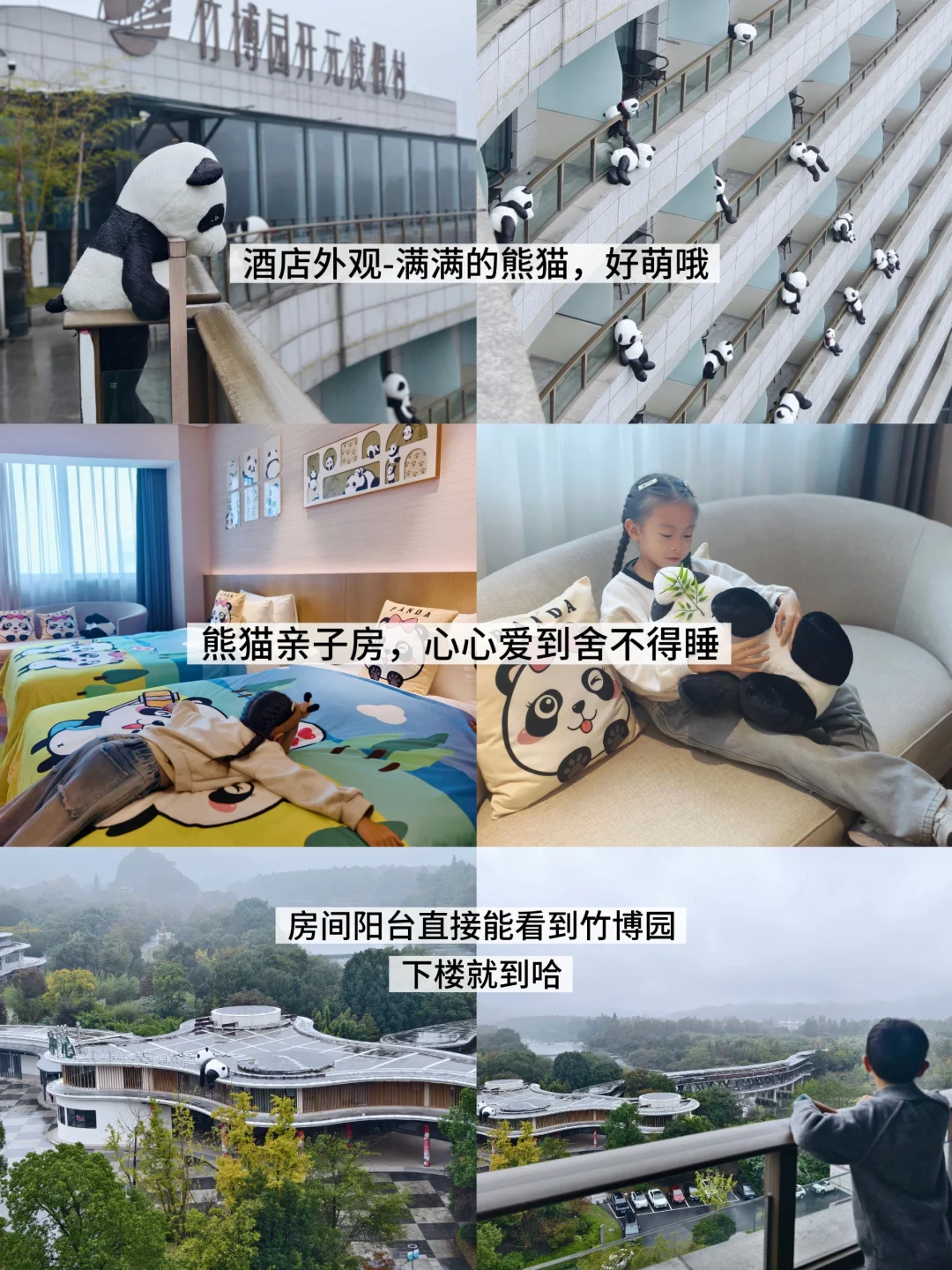 我们住在竹博园大门旁的「安吉竹博园开元名都度假村」,定的熊猫亲子房,从壁画到抱枕,满屋皆是萌趣熊猫元素,孩子一进门就欢呼雀跃
