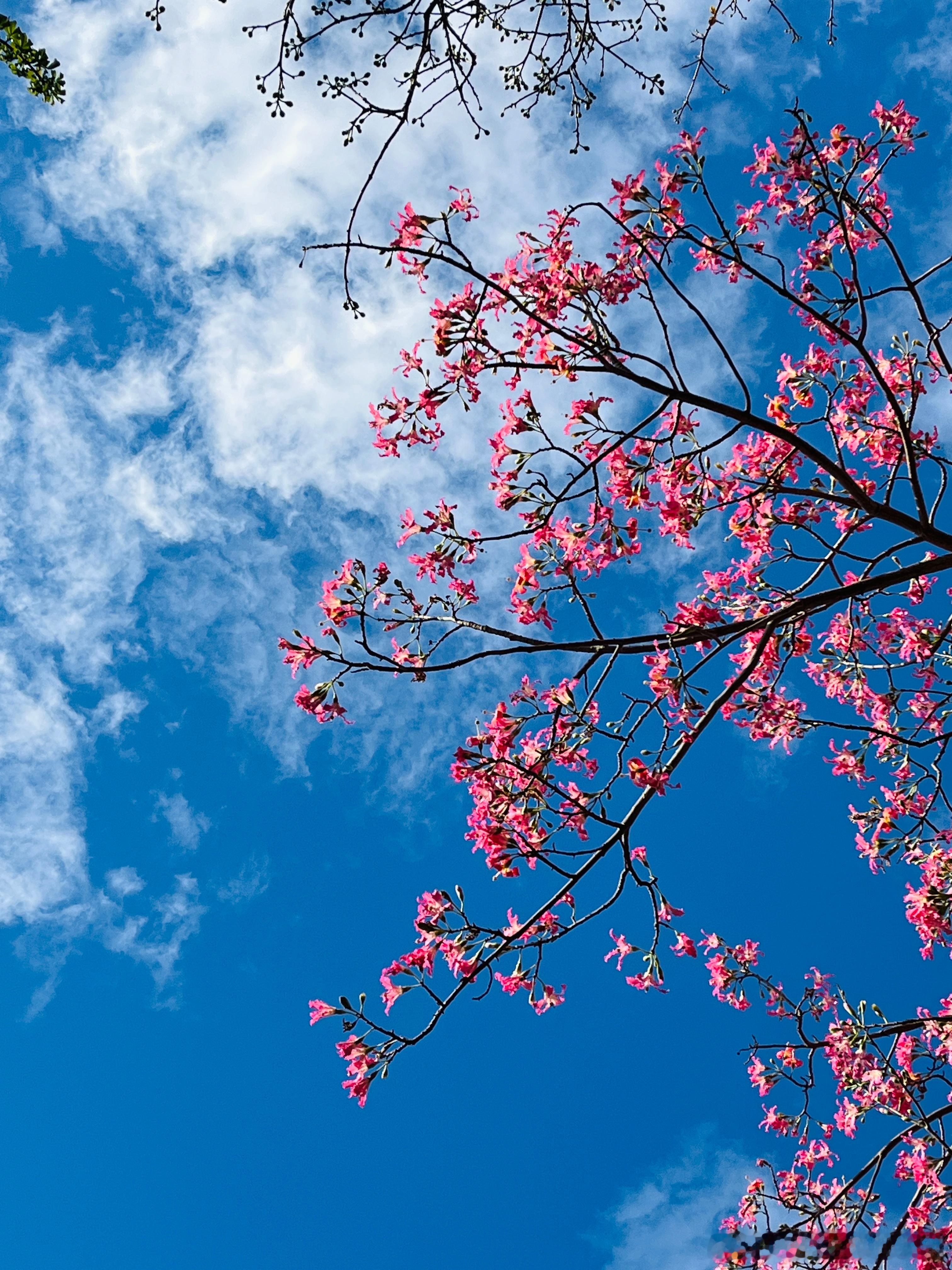 周末的广州街头,是异木棉的天下。漫步大街小巷,粉红的花簇在蓝天映衬下肆意绽放,把秋意晕染得格外浪漫。抬头望去,花枝交错如粉色云霞,微风掠过,花瓣似精灵般轻舞。这满街的绚烂,是南方秋天独有的温柔,让每一步都像走在诗意里,忍不住为这份美好驻足,把周末的小确幸,都藏在异木棉的花海中~ 🌸