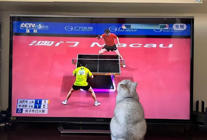 【】11月16日,全运会乒乓球成年组男单金牌赛,樊振东4-1战胜林诗栋,卫冕成功。 晒出樊振东比赛的电视画面九宫格,电视机前还有两只可爱的猫咪。吴敬平说:今天的决赛,除了前两局打得紧张以外,后面三局比赛基本上是碾压。正应了古人的一句话:善攻者,动于九天之上。祝获小胖全运会蝉联男单冠军。人生万事须自为,跬步江山即寥廓。