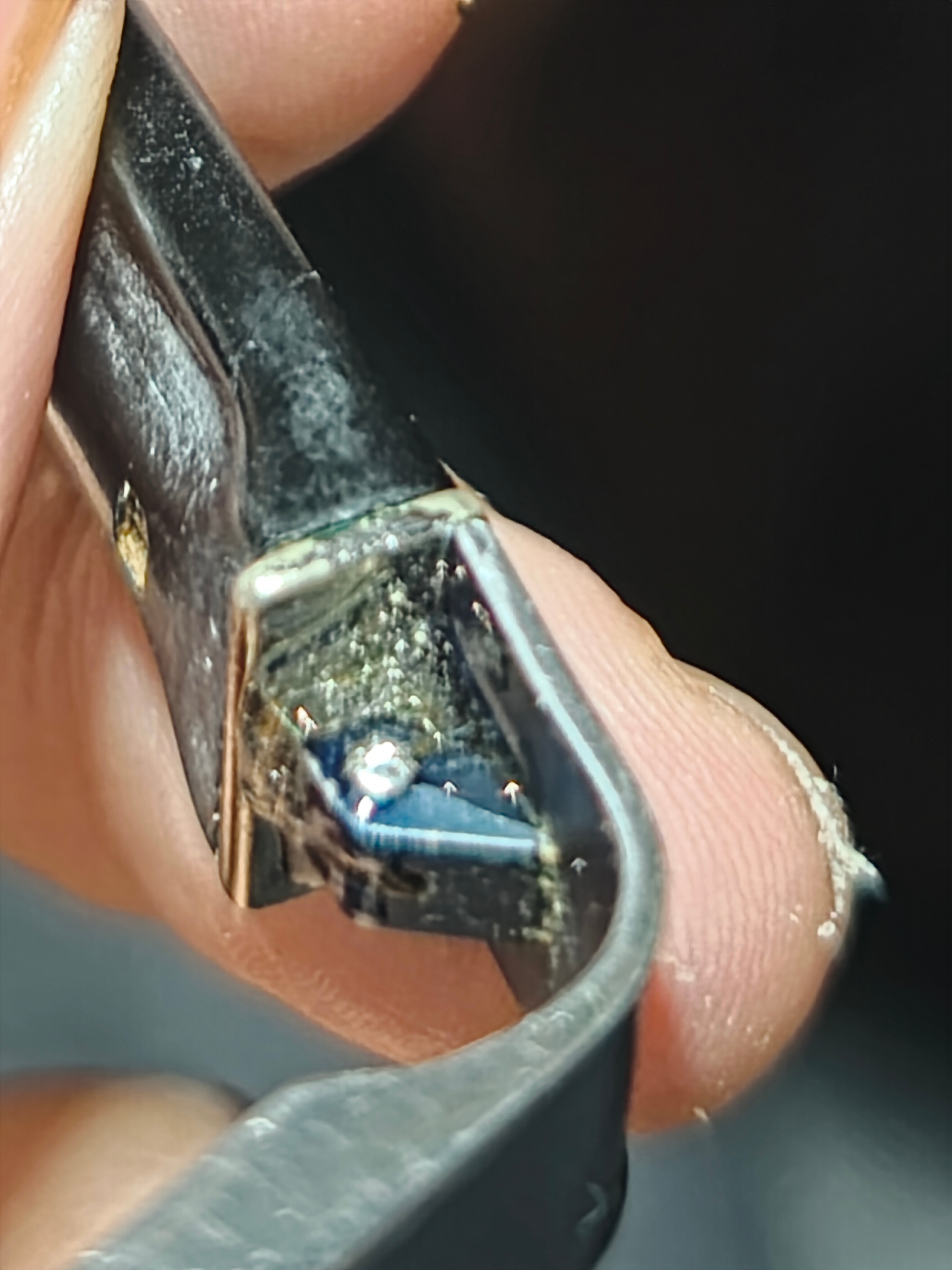 眼镜修好了。我用环氧树脂把整块都封上,没用外面粘贴片。环氧树脂还是蛮强的。就是凝